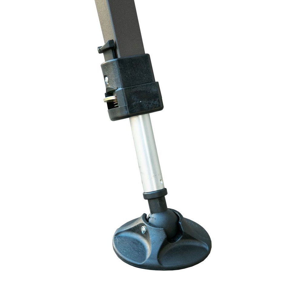 Надежная устойчивая стальная рама выдерживает нагрузку до 150 кг, а телескопические ножки с упорами увеличенной площади можно отрегулировать под нужную вам высоту.