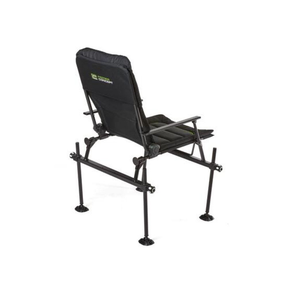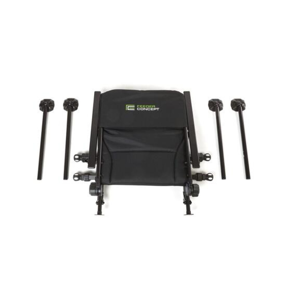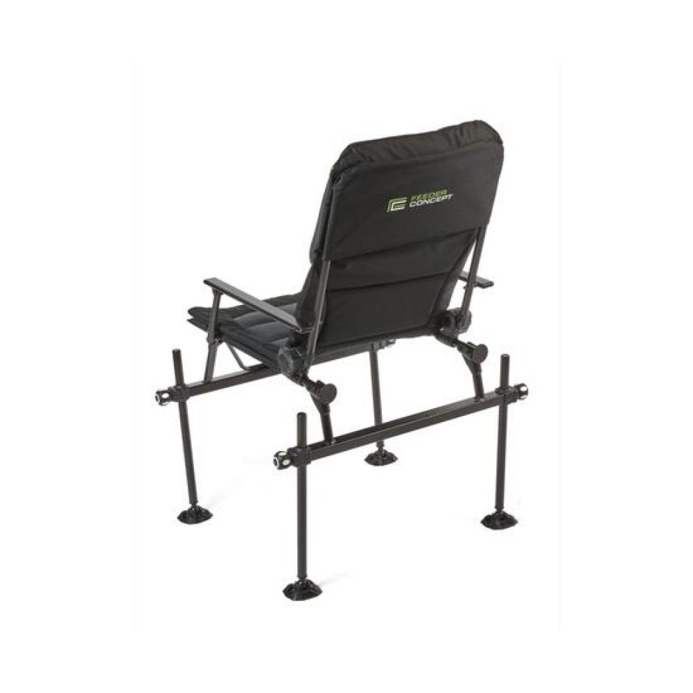 Отличный выбор для любителей ловли на фидер.- Несколько уровней регулировки наклона спинки.- Ножки с возможностью независимой регулировки высоты и широкими телескопическими опорами позволяют установить кресло на любой неровной поверхности.- Удобный мягкий подголовник.- Покрытие кресла сделано из высокопрочной, износостойкой и водонепроницаемой ткани.- Легкий и ультрапрочный алюминиевый каркас.- Кресло легко складывается и переносится.- Четыре точки для крепления аксессуаров