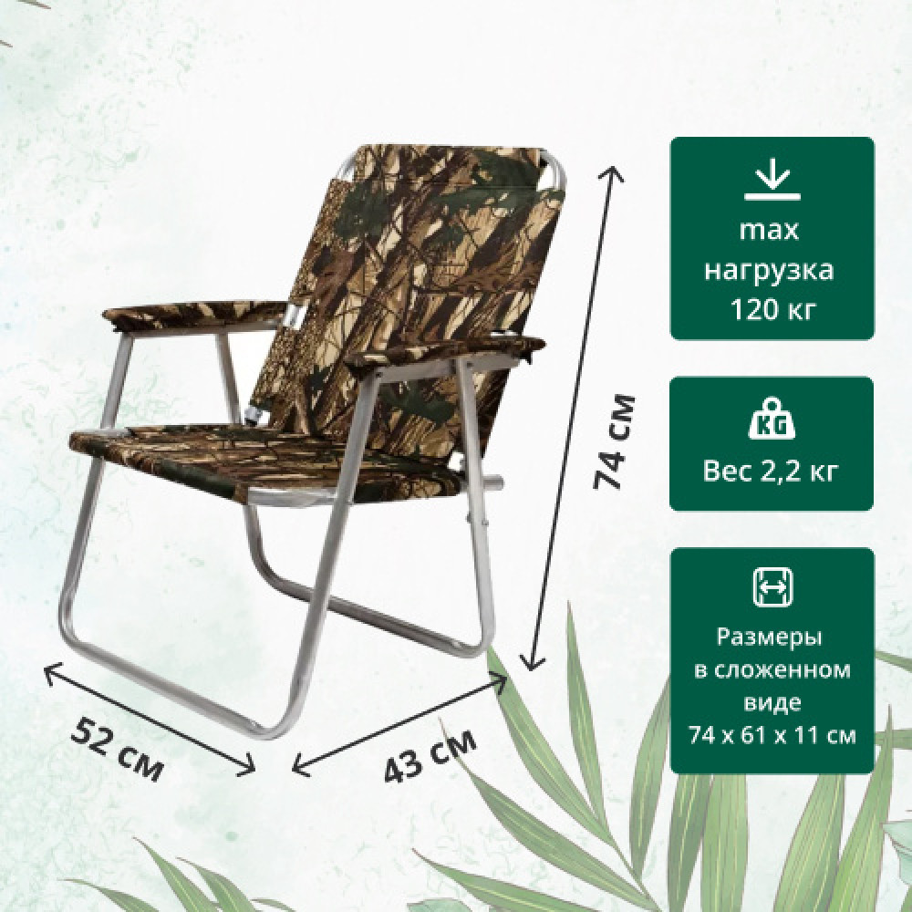 - Размеры кресла в сложенном виде: 74 х 61 х 11 см.