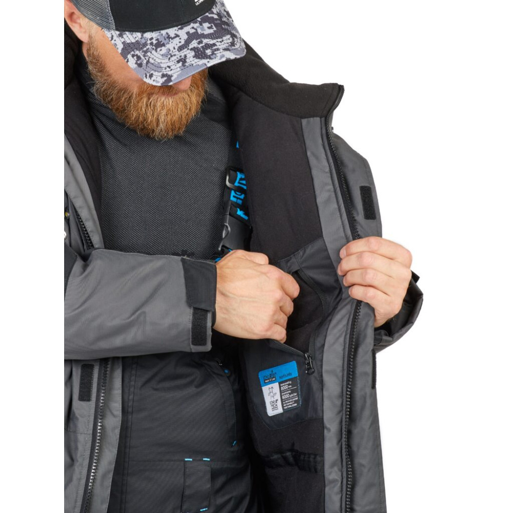 Встроенная система LED SYSTEM (батарея в комплект не входит) состоит их 8 светодиодных лампочек, встроенных в верхней части куртки. LED система освещает руки и пространство, предназначена для более комфортной ловли в темное время суток. А также светодиодное освещение обеспечивает дополнительную безопасность при передвижении в темноте.