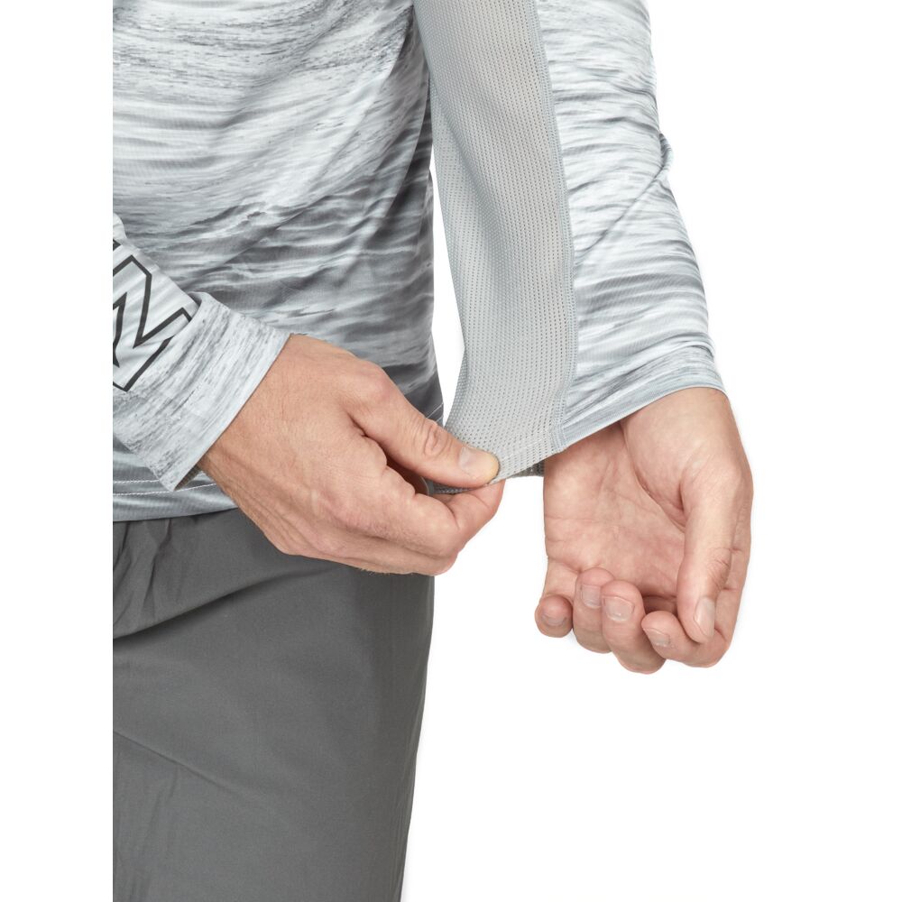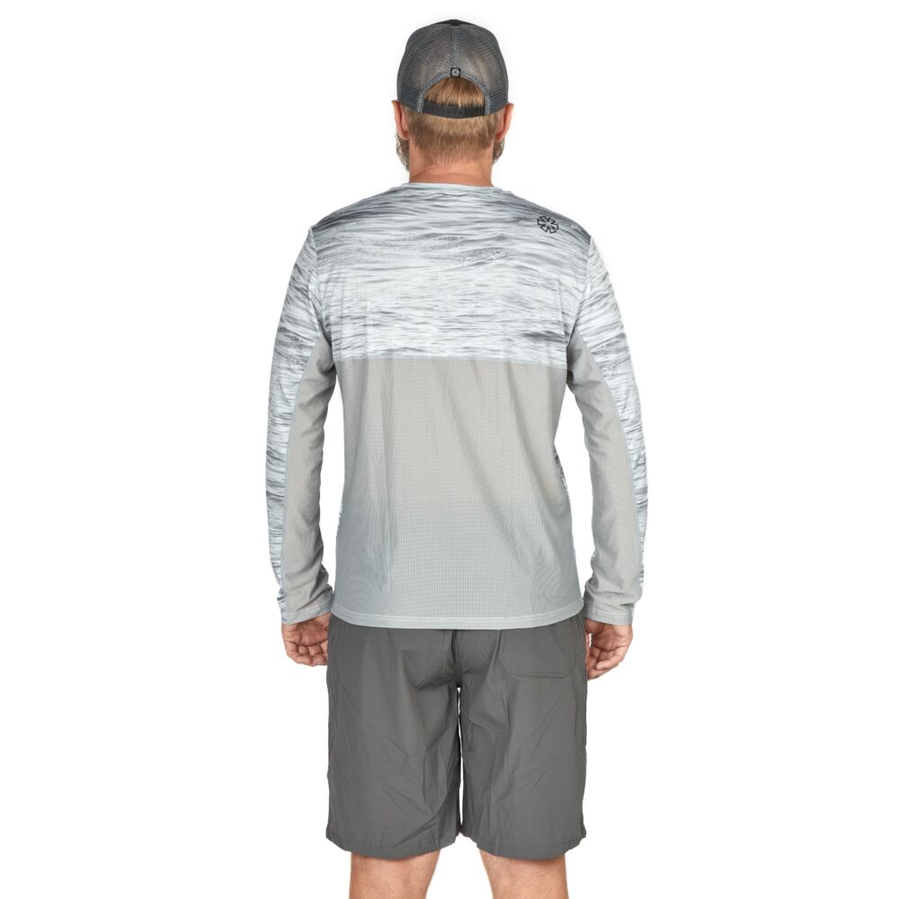 Изготовлен из быстросохнущего, дышащего материала. Мокрый материал быстро высыхает, обеспечивая прохладу и комфорт в жаркую погоду. Синтетические волокна материала хорошо пропускают воздух и содержат гидрофобное покрытие, которое хорошо выводит пот, сохраняя кожу сухой. Материал имеет высокий коэффициент защиты от ультрафиолетового излучения (UPF-50), что позволяет продолжительное время находиться под прямыми лучами солнца. Сетчатые вставки на спине и рукавах обеспечивают хорошую вентиляцию и дополнительный комфорт. Джемпер имеет светлую окраску, благодаря чему поглощает минимальное количество солнечного света, что ещё больше увеличит комфорт Вашей рыбалки.
