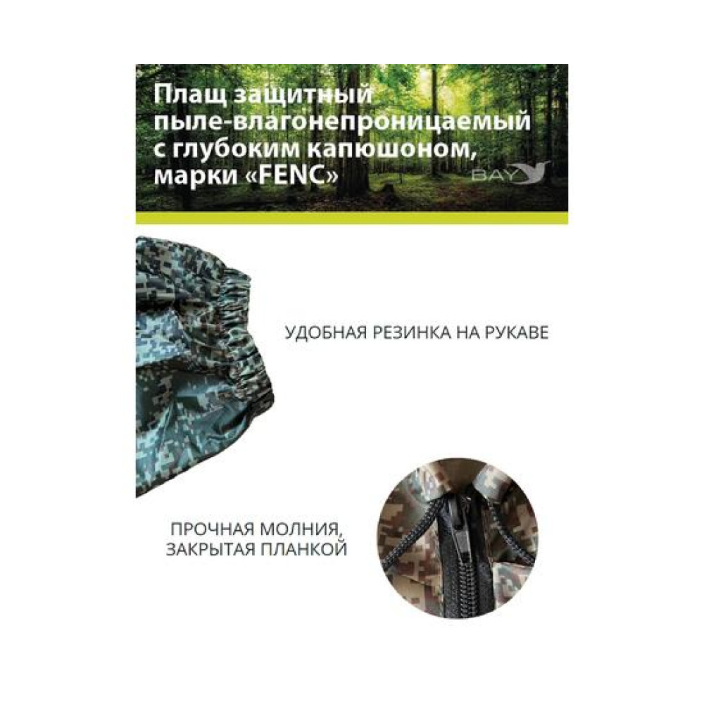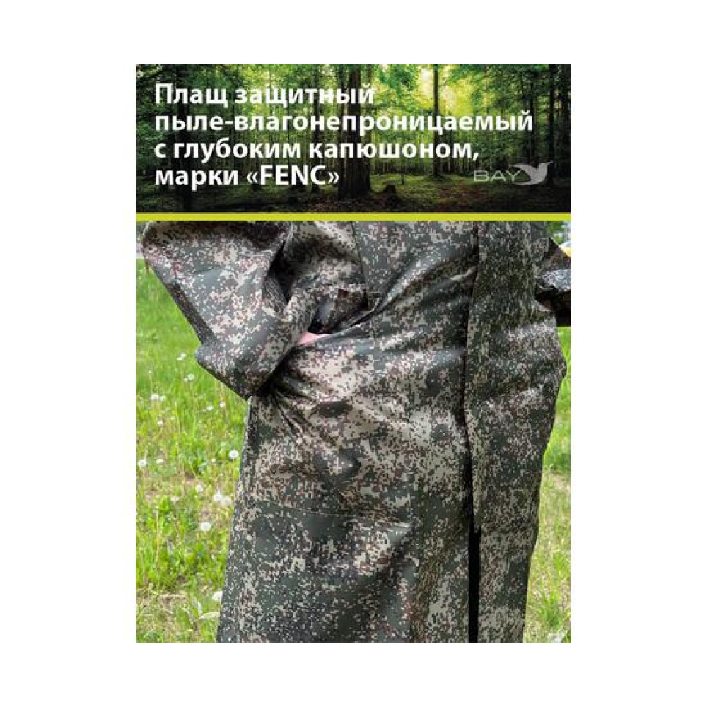 Пыле- ветро- влагозащитный плащ выполнен из гипоаллергенного пыле- и влагонепроницаемого материала с пропиткой ПВХ Оксфорд