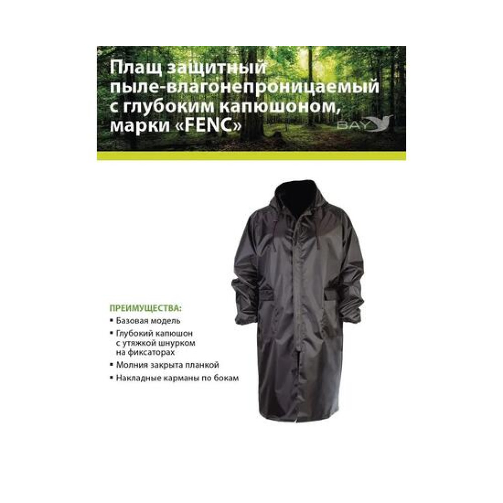 Пыле- ветро- влагозащитный плащ выполнен из гипоаллергенного пыле- и влагонепроницаемого материала с пропиткой ПВХ Оксфорд