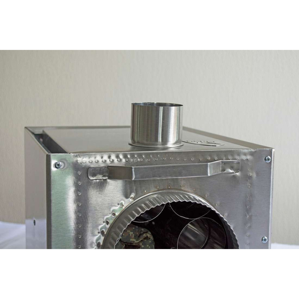 В верхней части топочной камеры, расположена стальная пластина-искрогаситель, который увеличивает КПД печки при использовании в зимней палатке. Искрогаситель образует дополнительную камеру догорания, которая не позволяет эффективному теплу покидать топку напрямую. За счет наличия искрогасителя продолжительность горения походной печки на одной закладке дров достигает 5-6 часов.