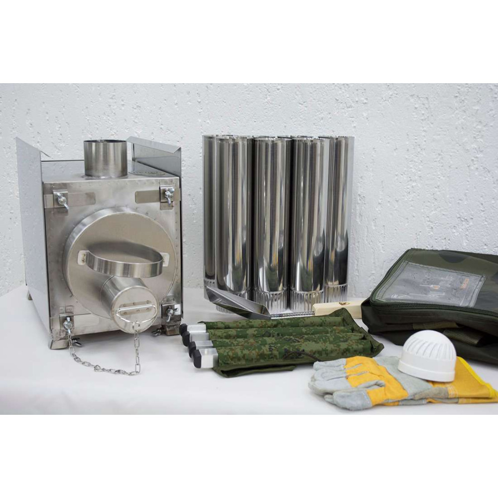 Съемные ножки на барашковых винтах придают походной печке достаточную высоту и устойчивость, обеспечивая необходимую пожарную безопасность при использовании в палатке, а также упрощают транспортировку.