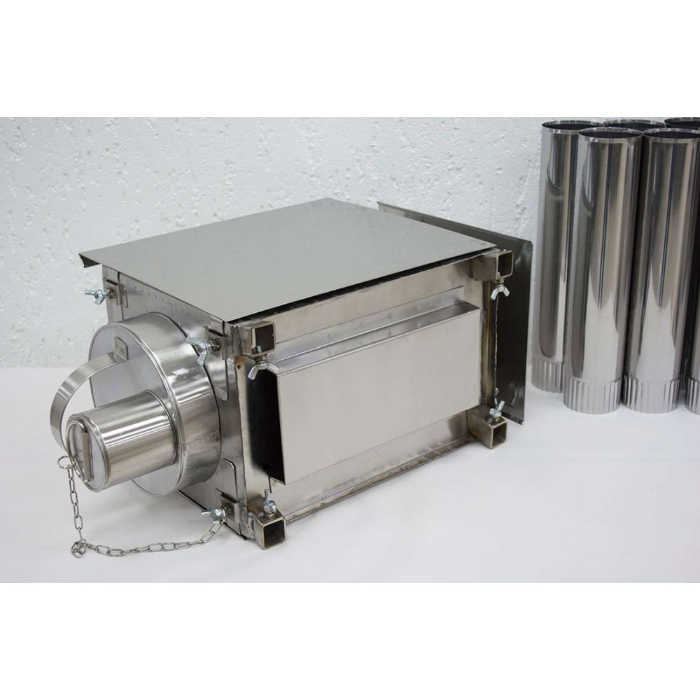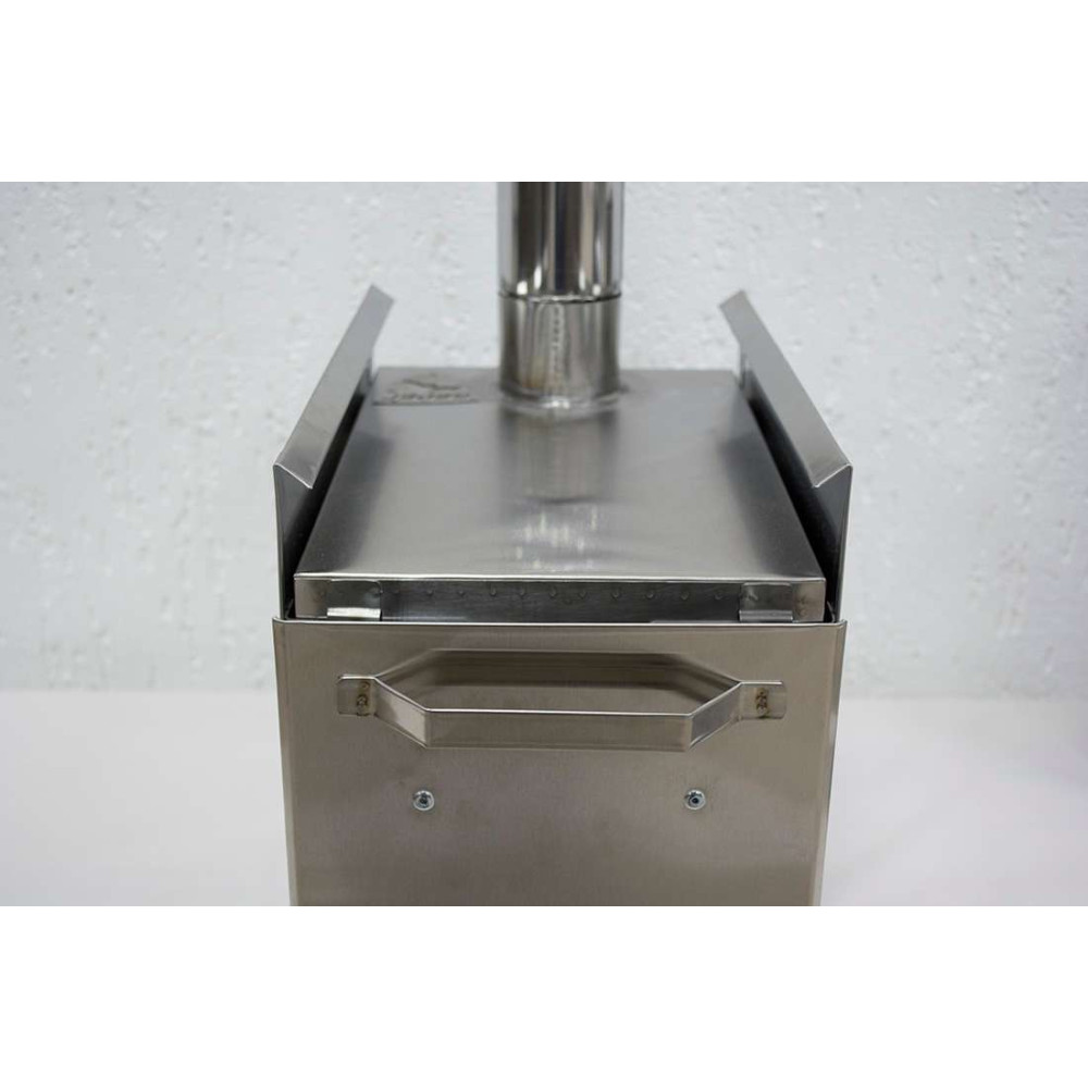 Для производства дровяной мини печи Экономка применяется жаропрочная нержавеющая сталь AISI 430 толщиной 0,5 мм – для короба, 0,4 мм – для труб дымохода.