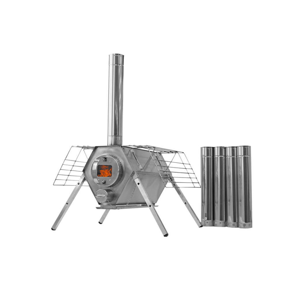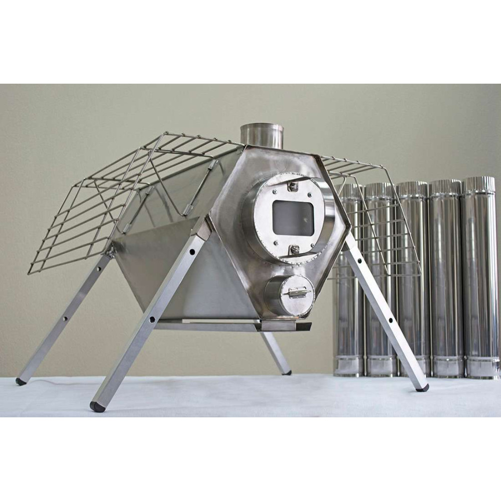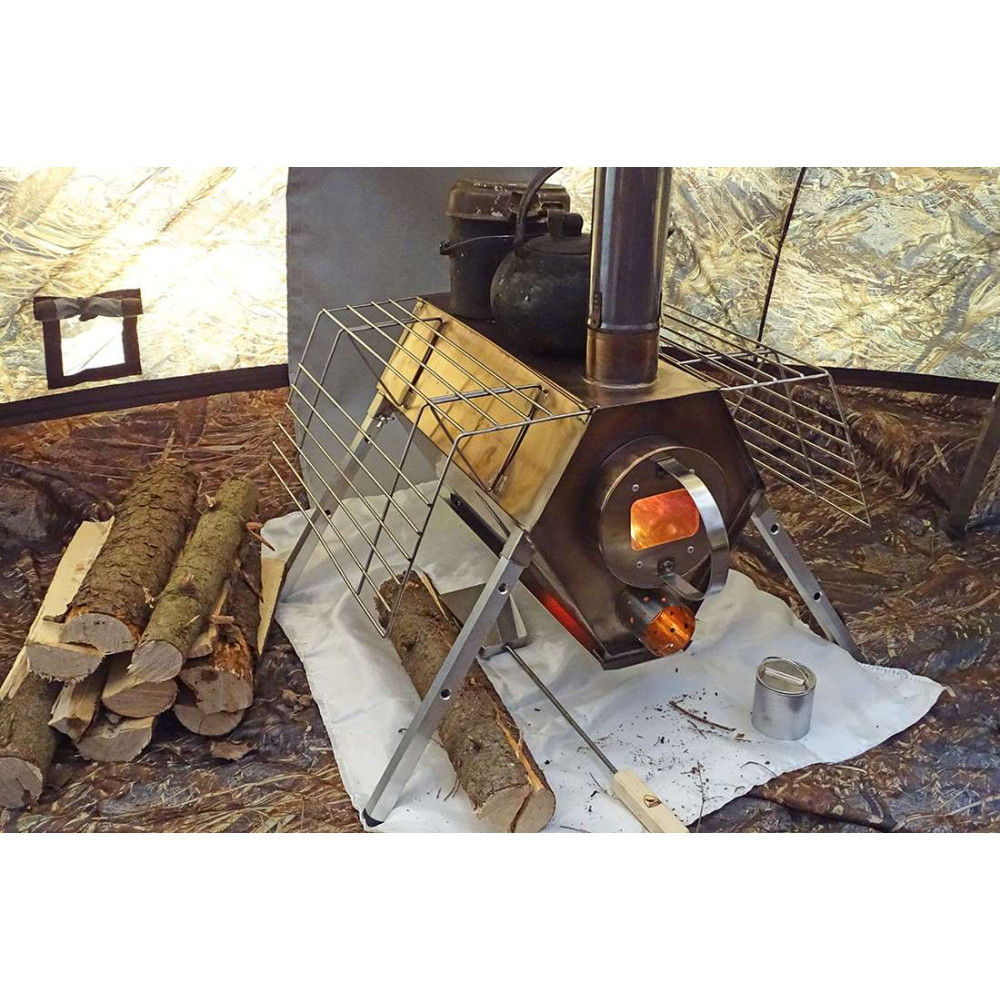 Походная печь для палатки Берег Сопутник применяется для обогрева палаток и приготовления пищи в полевых условиях. Дровяная печь выполнена в форме шестигранника. Шестигранник делает конструкцию долговечнее за счет дополнительных ребер жесткости.