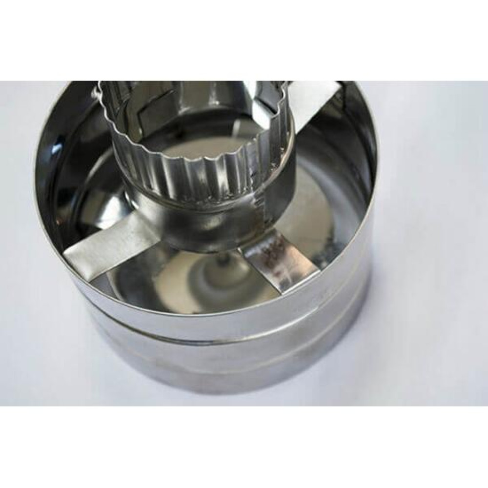 Конструкция дефлектора позволяет защитить дымоход от попадания нежелательных осадков, которые могут ухудшить эффективность горения за счет снижения температуры в топке печи