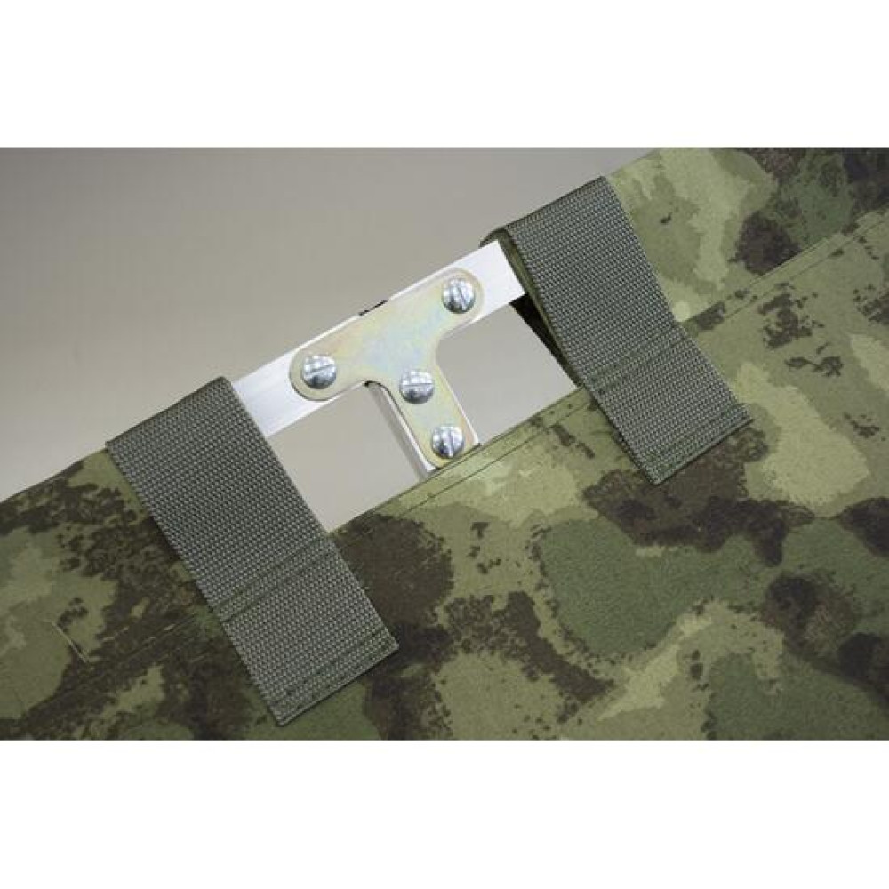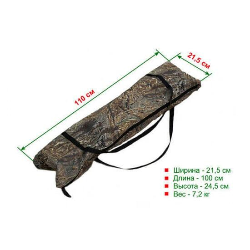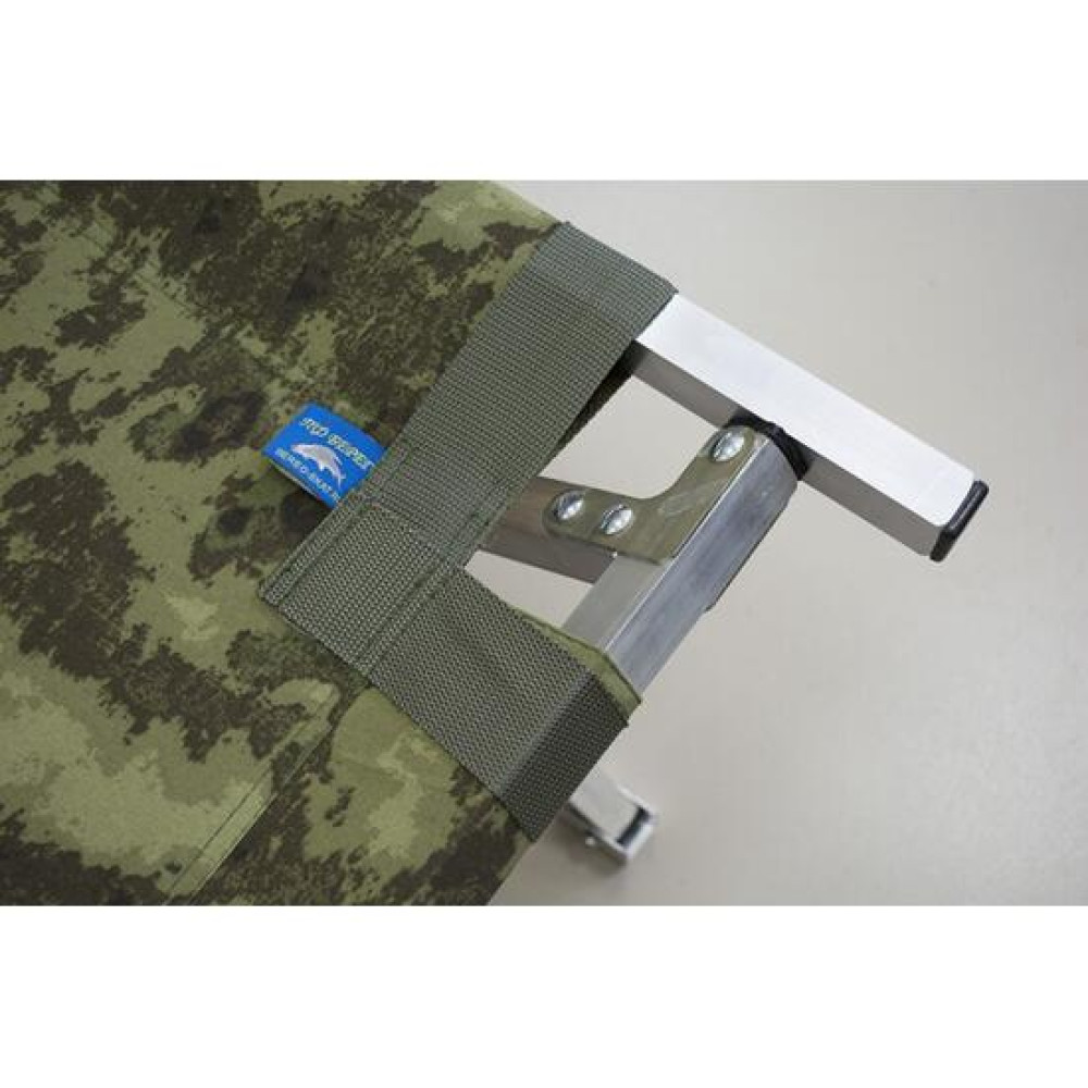 Усиление стропой по низу позволяет с легкость выдерживать нагрузку до 400 кг.При установке раскладушки в зимней палатке или на рыбалке дополнительной особенностью станет наличие подпятников в нижней части каркаса