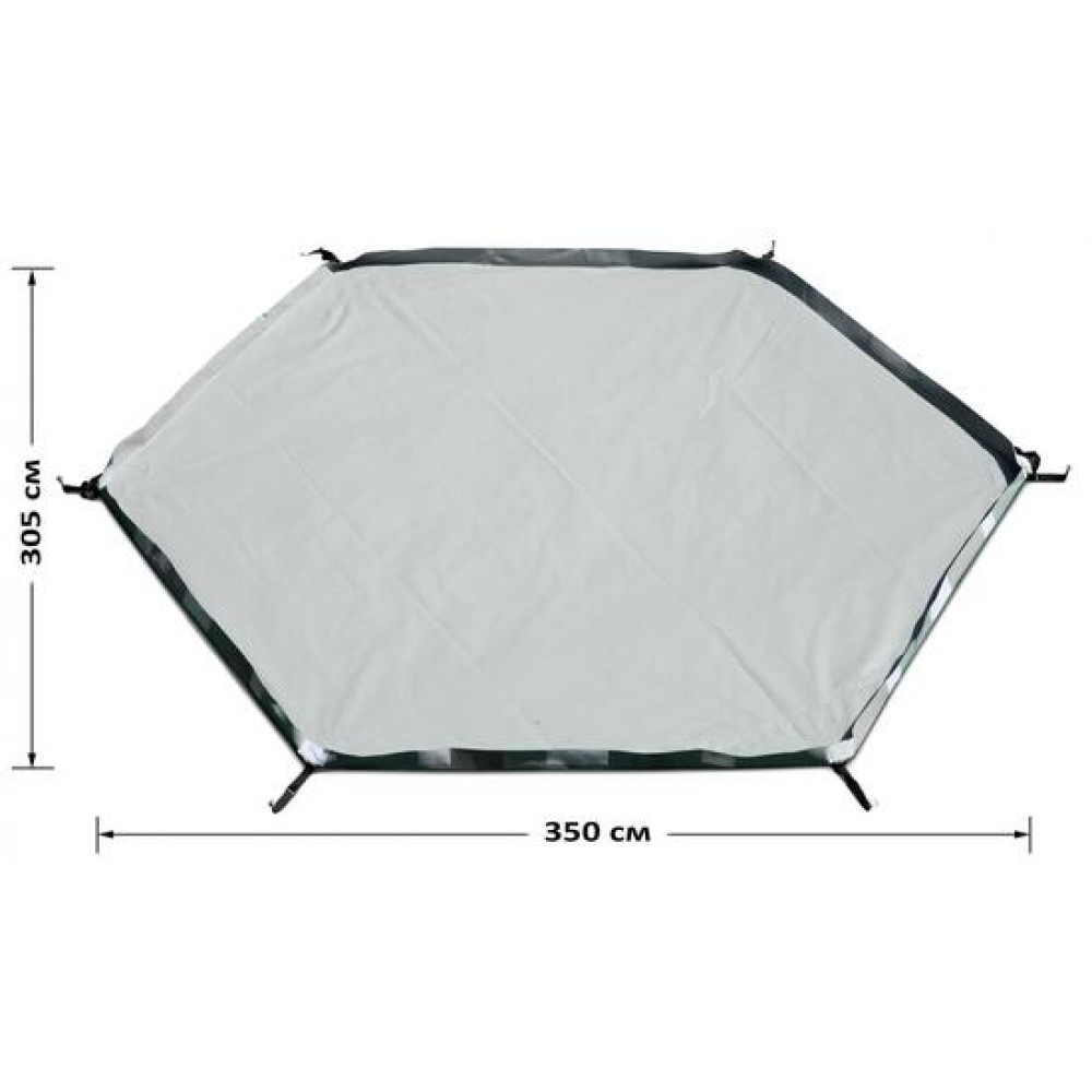 Дно размером 305 х 350 см выполнено по шестигранной форме палатки в виде корыта с защитными бортиками высотой 6 см