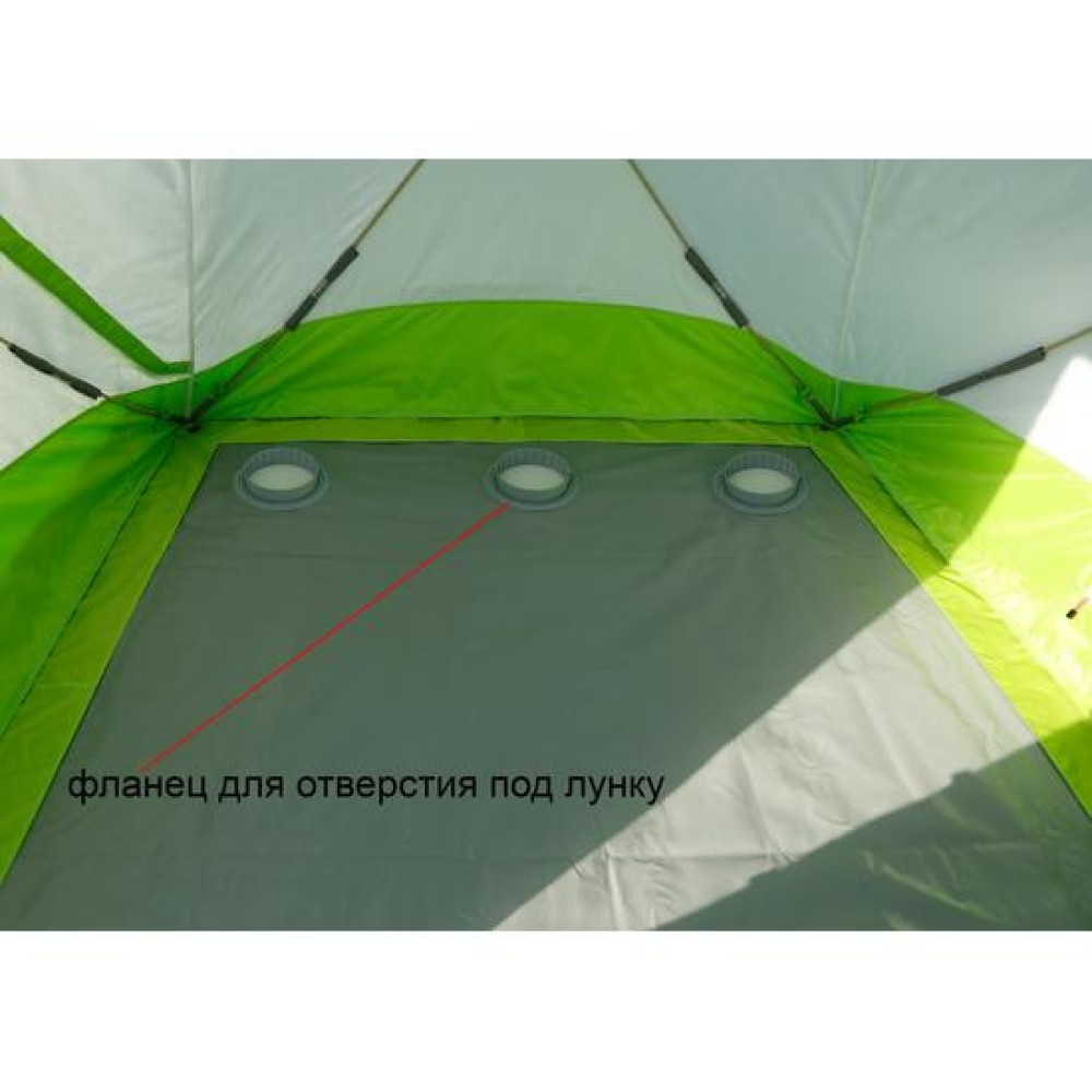 Отверстия под лунки в гидроизоляционном днище могут быть вырезаны пользователем самостоятельно, исходя из конфигурации размещенного в палатке оборудования