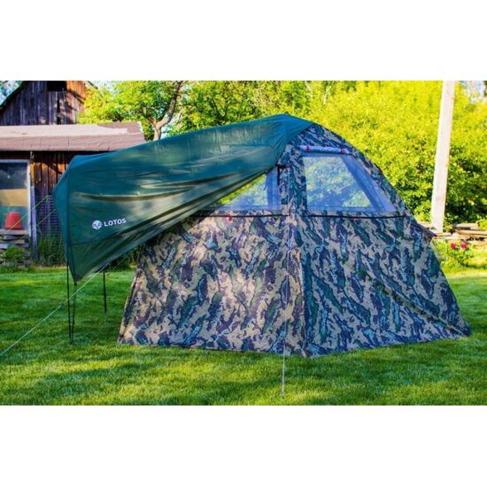 *Палатка ЛОТОС 5 в комплекте с козырьком очень удобна для любителей рыбной ловли на берегу водоема