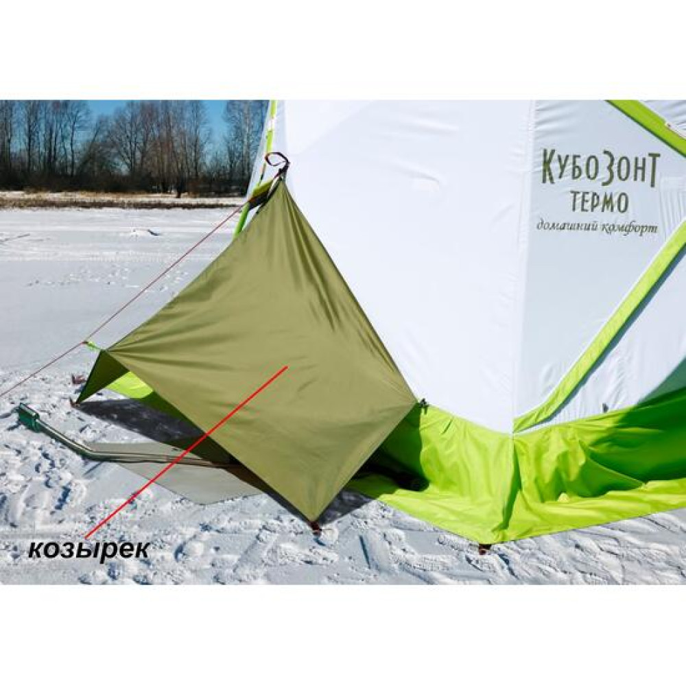Для защиты обогревателя от осадков с внешней стороны палатки предусмотрена возможность крепления защитного козырька