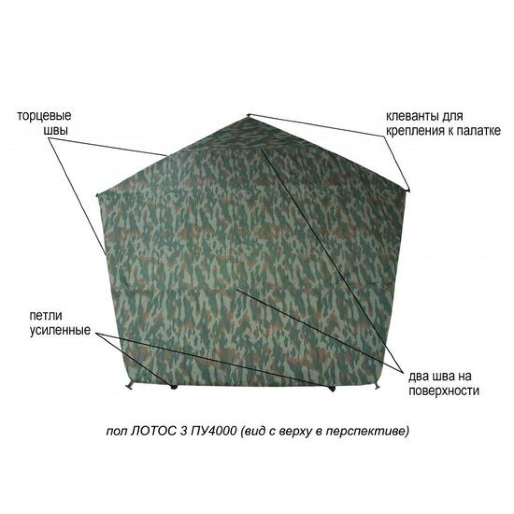 Пятигранная конструкция пола позволяет использовать его совместно с пятигранной палаткой ЛОТОС 2
