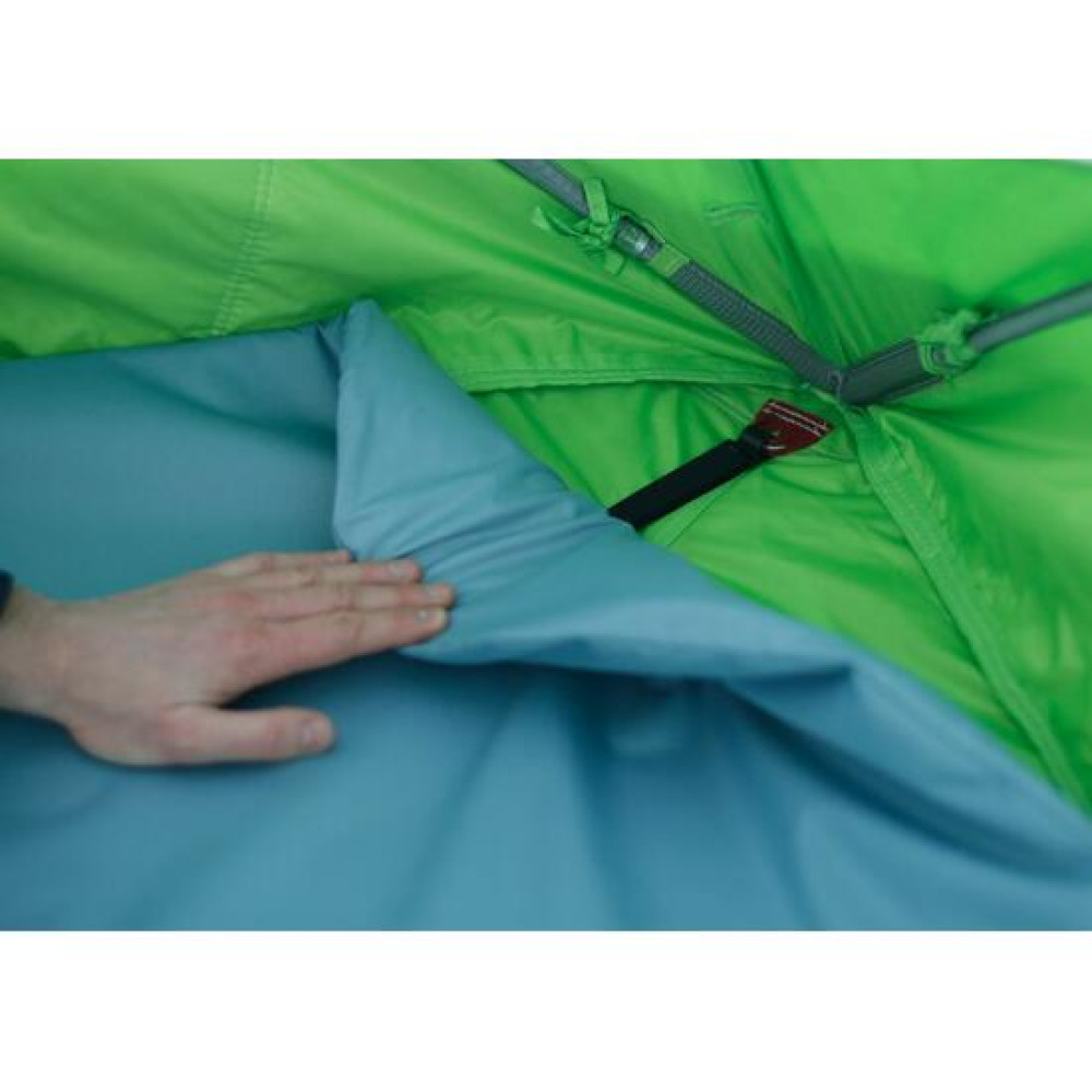 Утепленный пол накрывает внутреннюю юбку палатки, предотвращая задувание ветра снизу