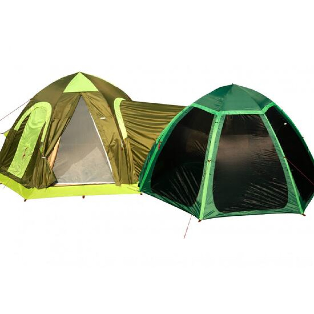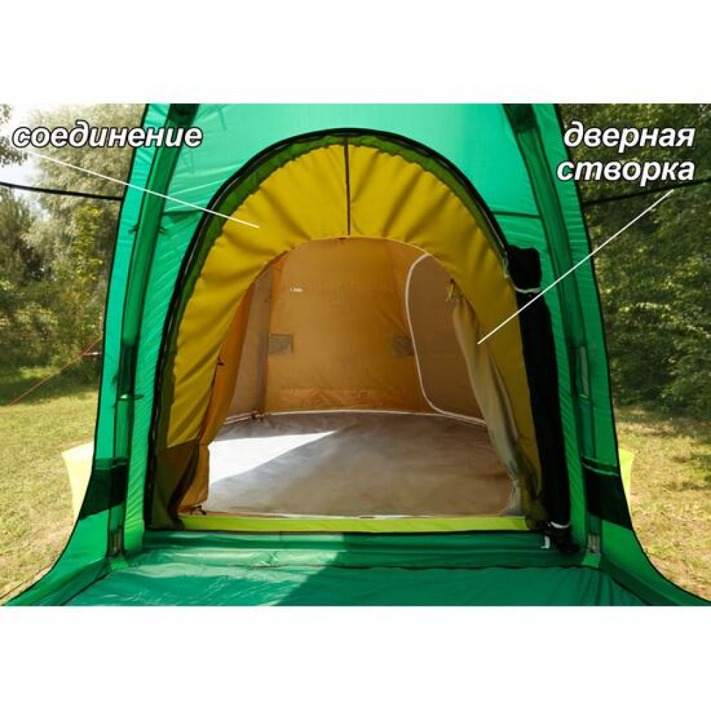 Соединение объединяет две палатки в единое жилое пространство, образуя между ними высокий и широкий проход, хорошо защищенный от осадков и ветра