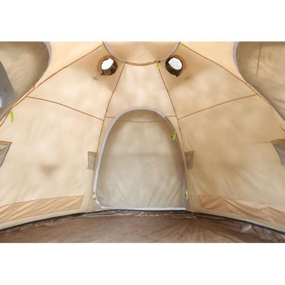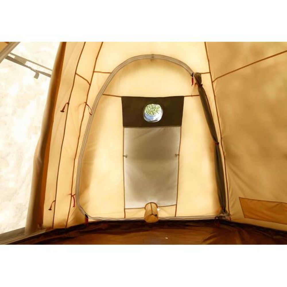 Шестая стенка оснащена D-образным проемом, который полностью дублирует соответствующий D-образный вход в палатку и может открываться во всю его ширину