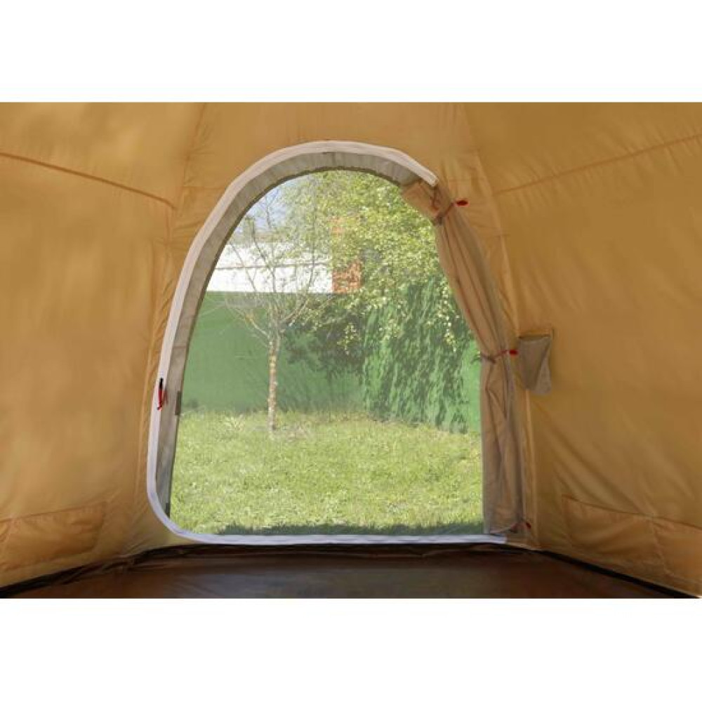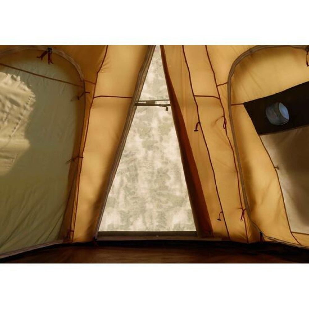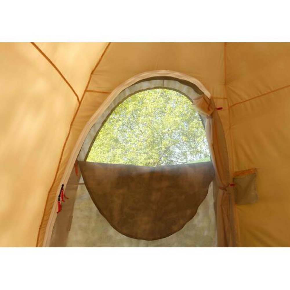 Дверное полотнище каждого D-образного проема внутреннего тента может открываться снизу вдоль порога палатки, образуя при этом вентиляционный проем шириной около 20 см и длиной около 170 см