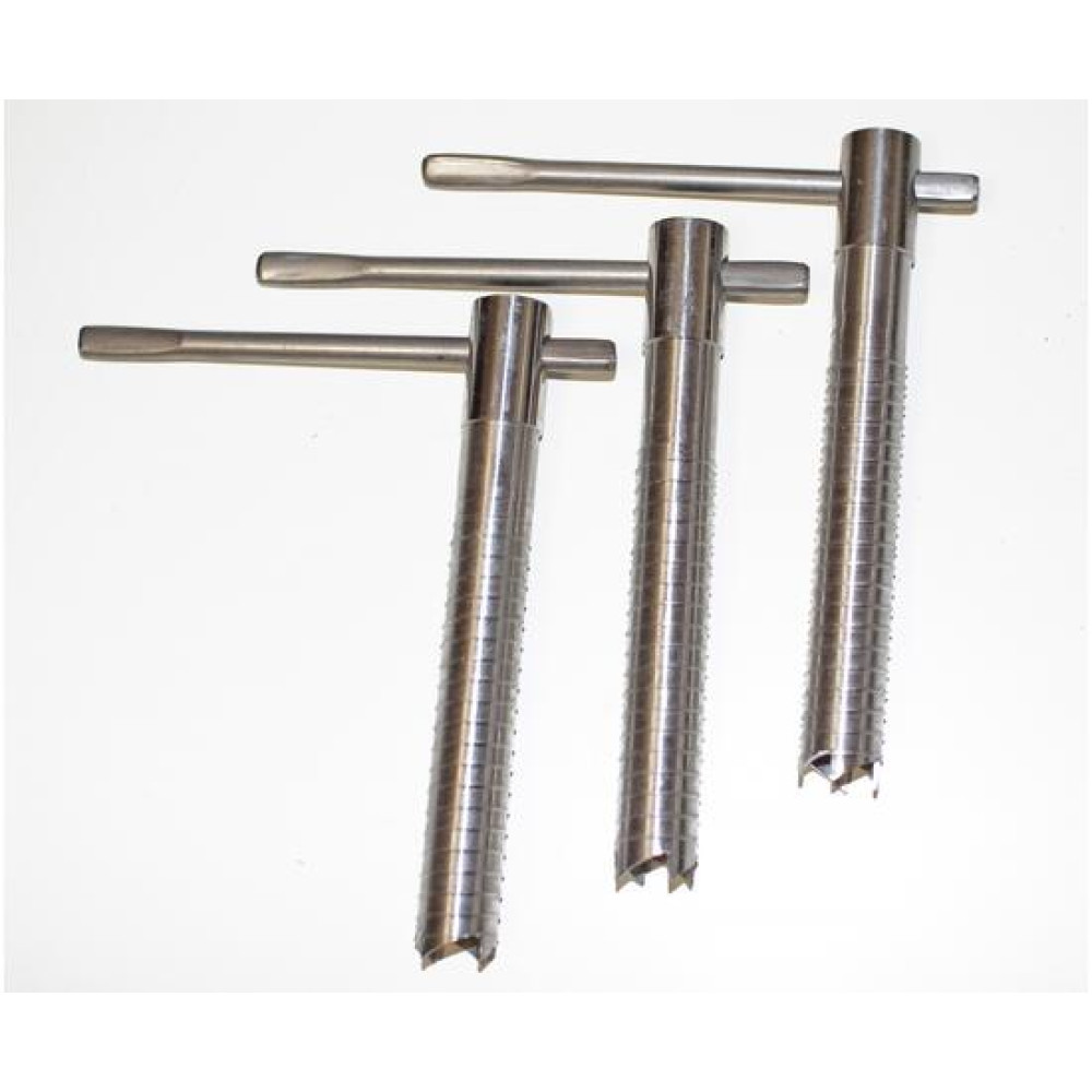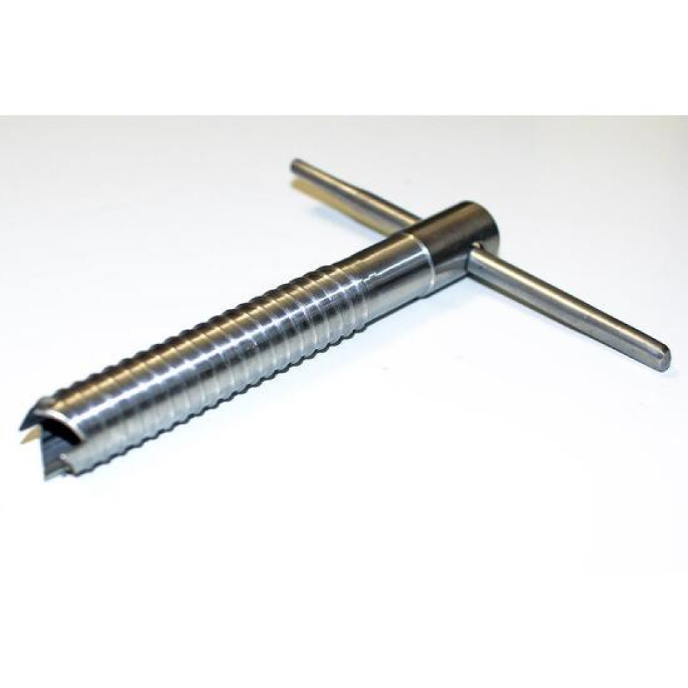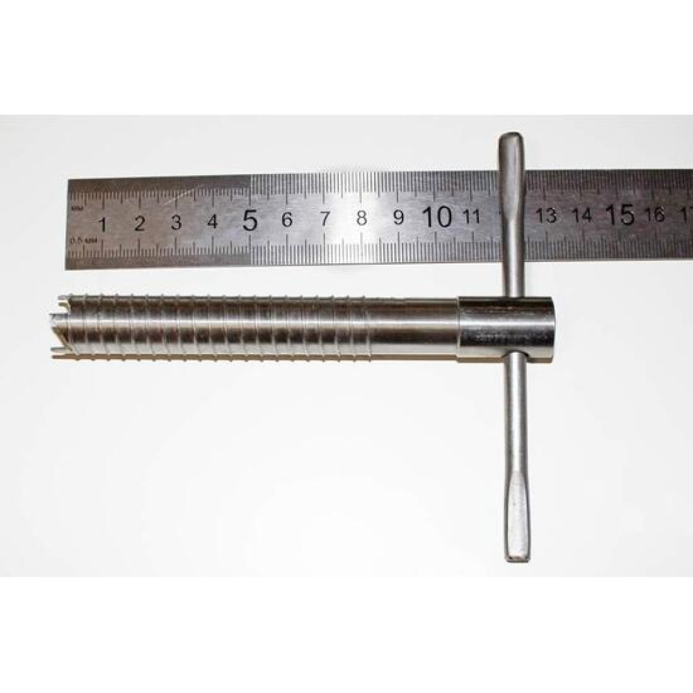 Основные характеристики: Ввертыш изготовлен из нержавеющей сталиДиаметр трубки с резьбой - 16 ммВысота «режущих зубцов» на резьбе - 0,5 ммТолщина стенки трубки - 1,0 ммДлина трубки - 130 ммДлина ручки - 110 мм *Для удобства хранения и транспортировки ввертышей рекомендуется использовать чехол для ввертышей