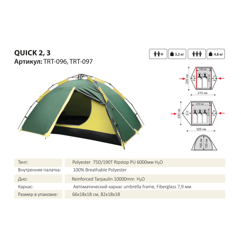 | Материал тента | 100% полиэстер 75D190T RipStop |