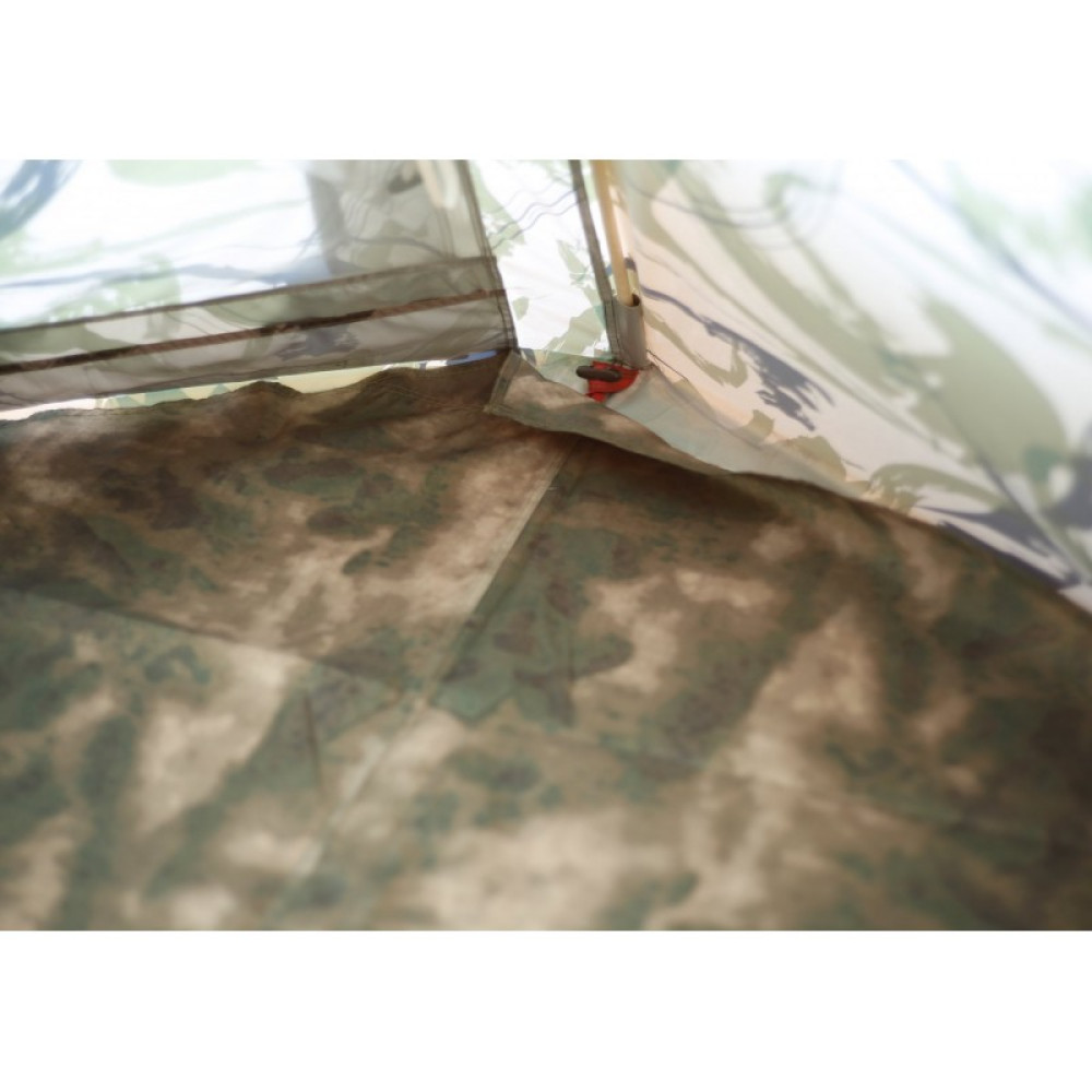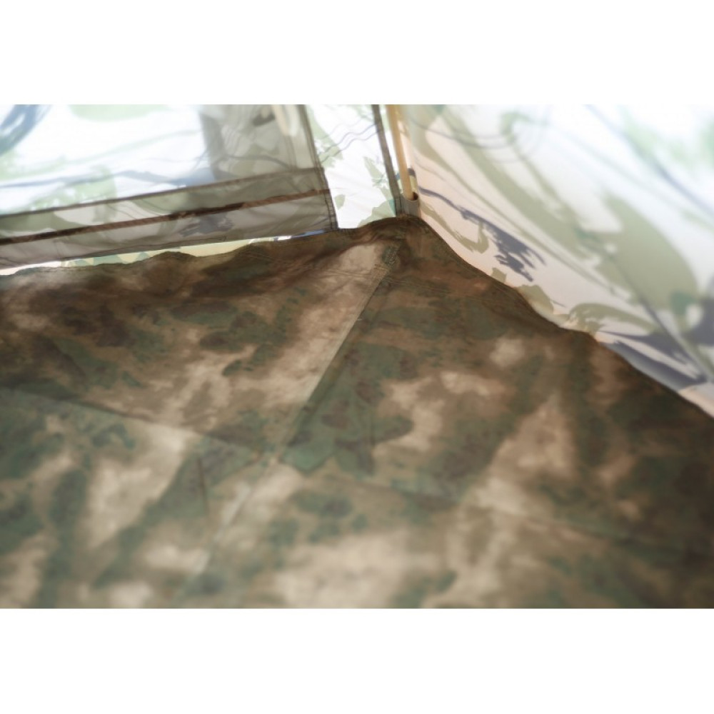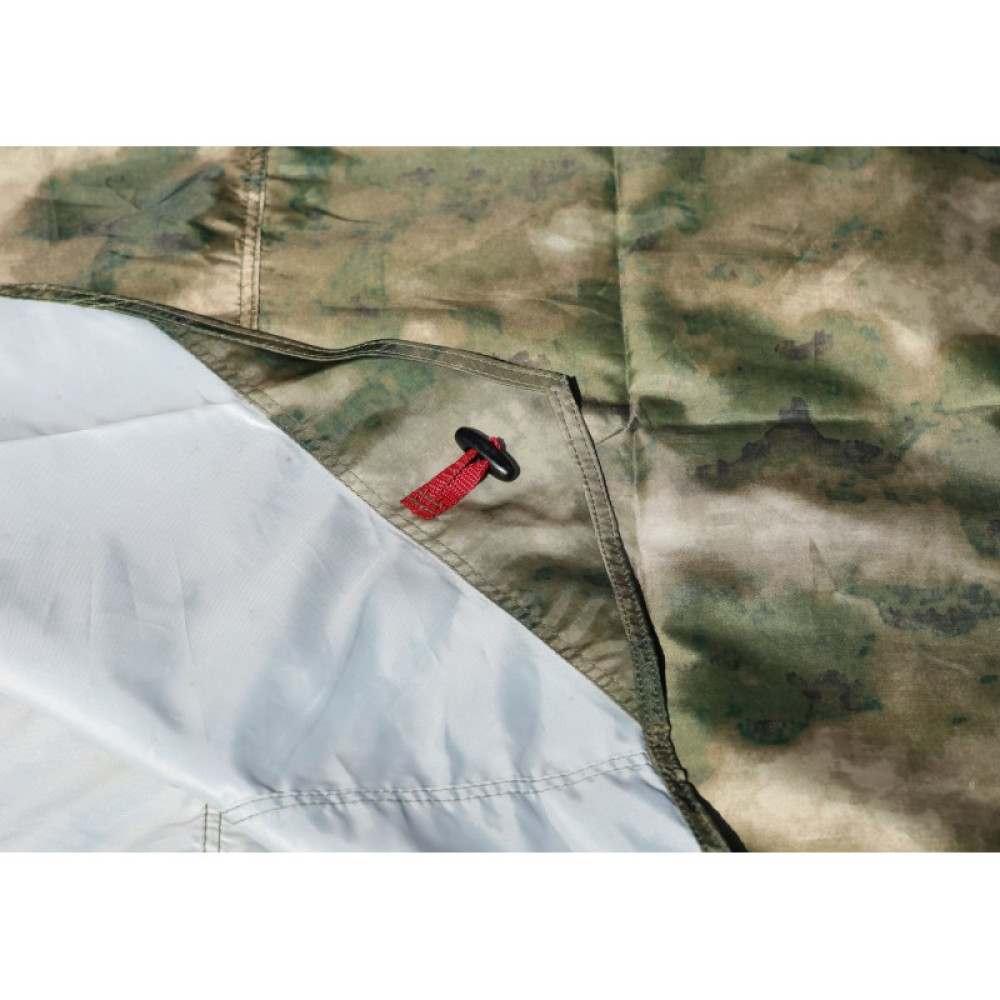 Пол изготовлен из прочной водостойкой ткани Оксфорд 300Д (плотность 140 г/м2). По углам пола закреплены усиленные петли из стропы с клевантами для его фиксации к палатке или к грунту.