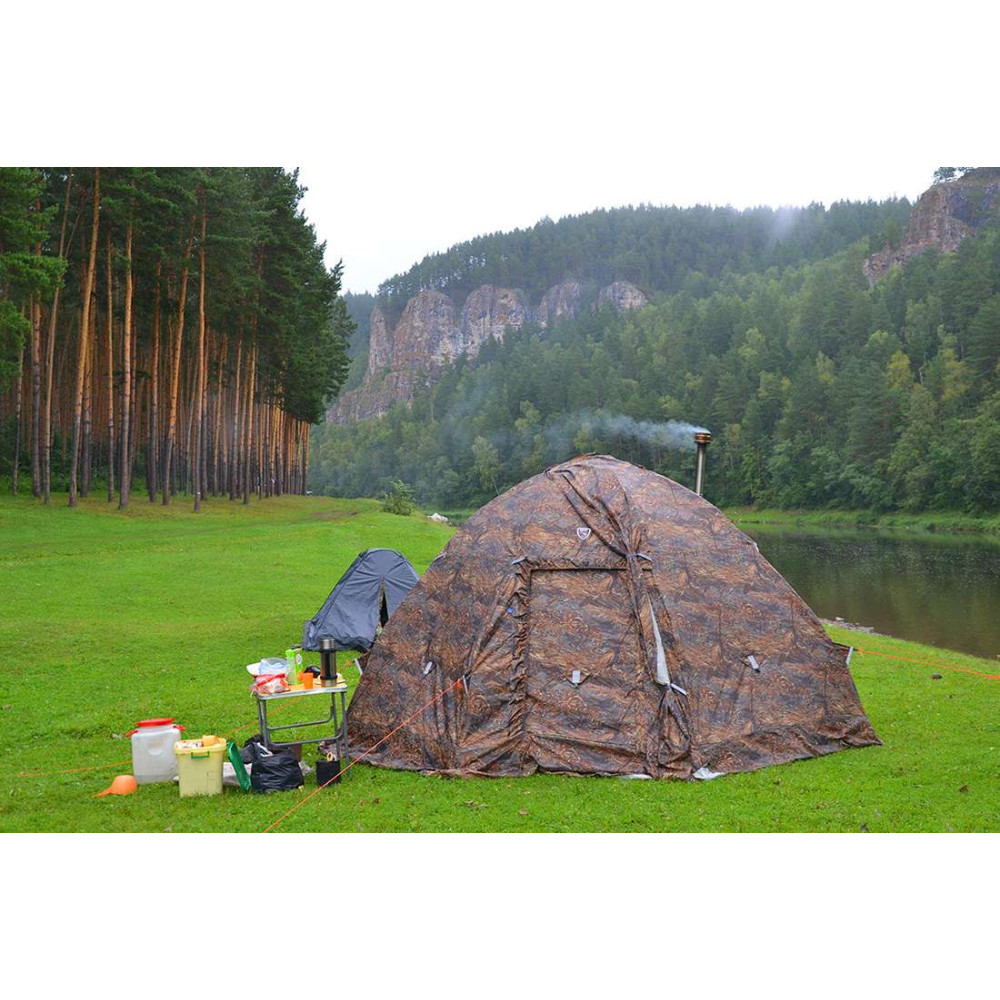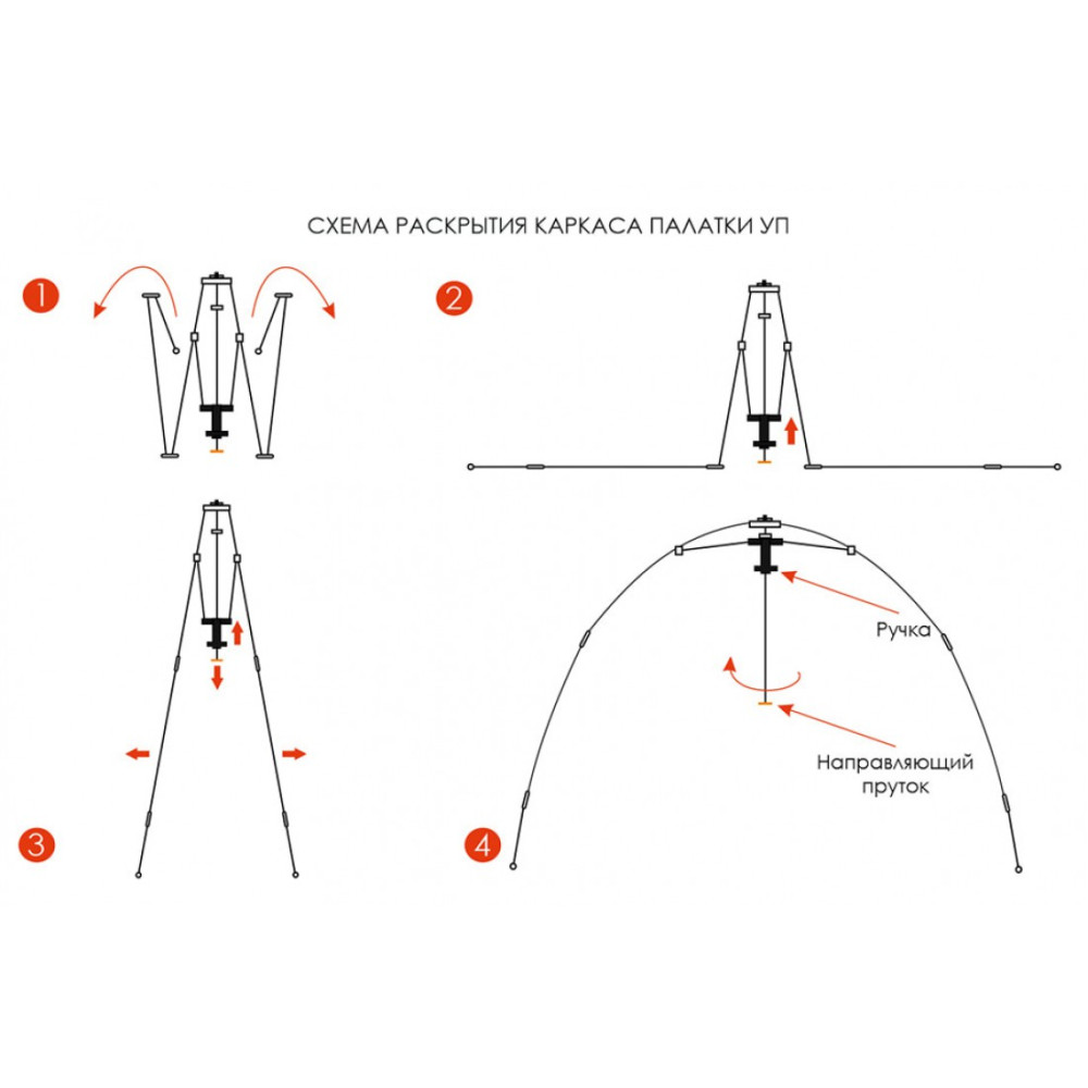 - 8 опорных дуг обеспечивают устойчивость при установке на открытой местности (в степи или на зимней рыбалке).