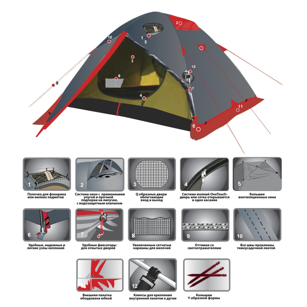 - Внешний тент имеет пропитку, задерживающую распространение огня