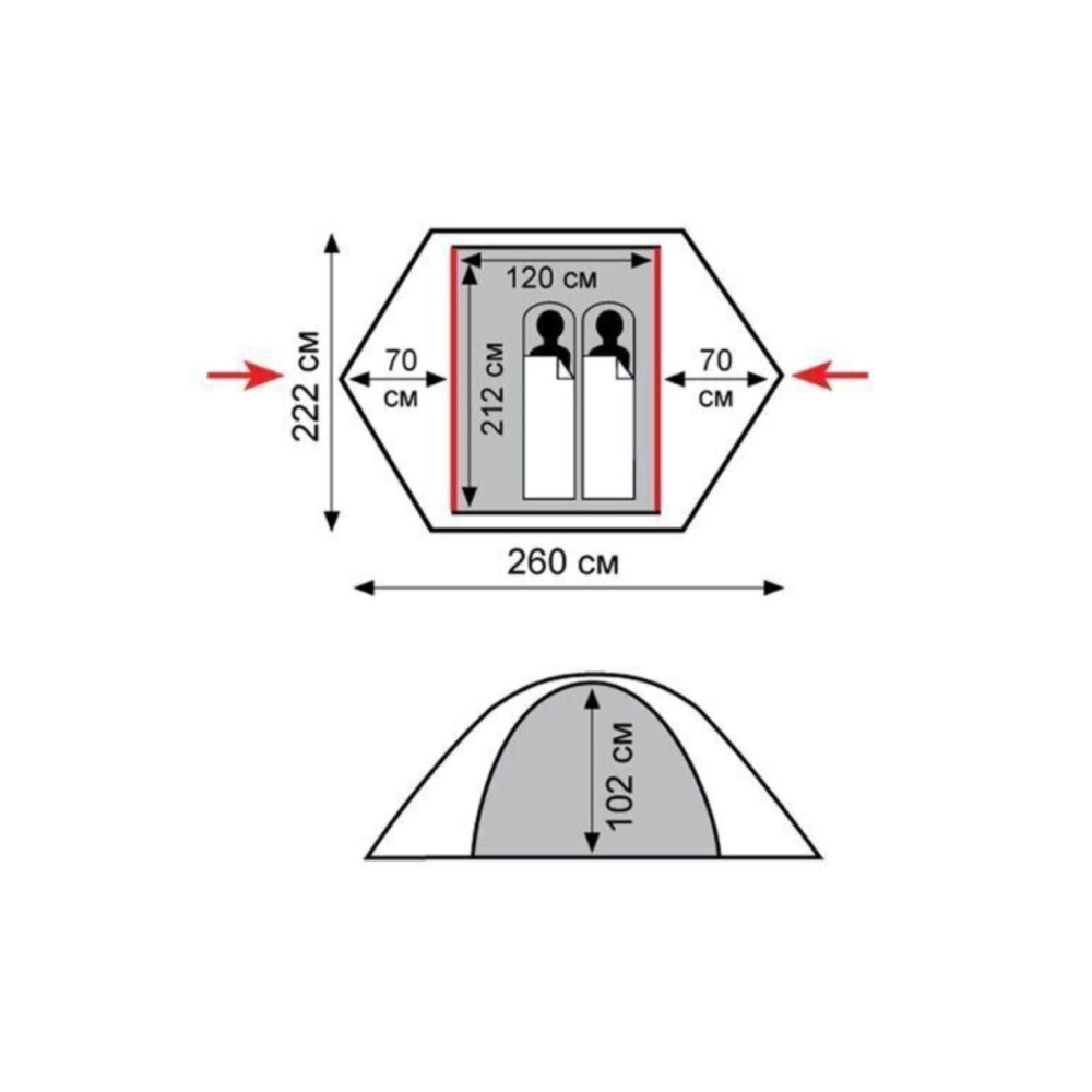 - Двухслойная палатка с двумя входами и 2 тамбурами