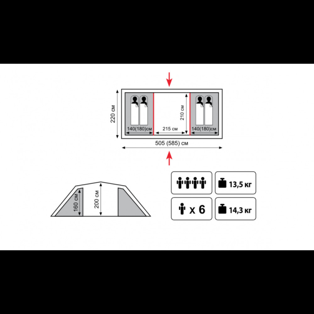 - Внешний тент имеет пропитку, задерживающую распространение огня - Входы всех спальных отделений продублированы москитной сеткой