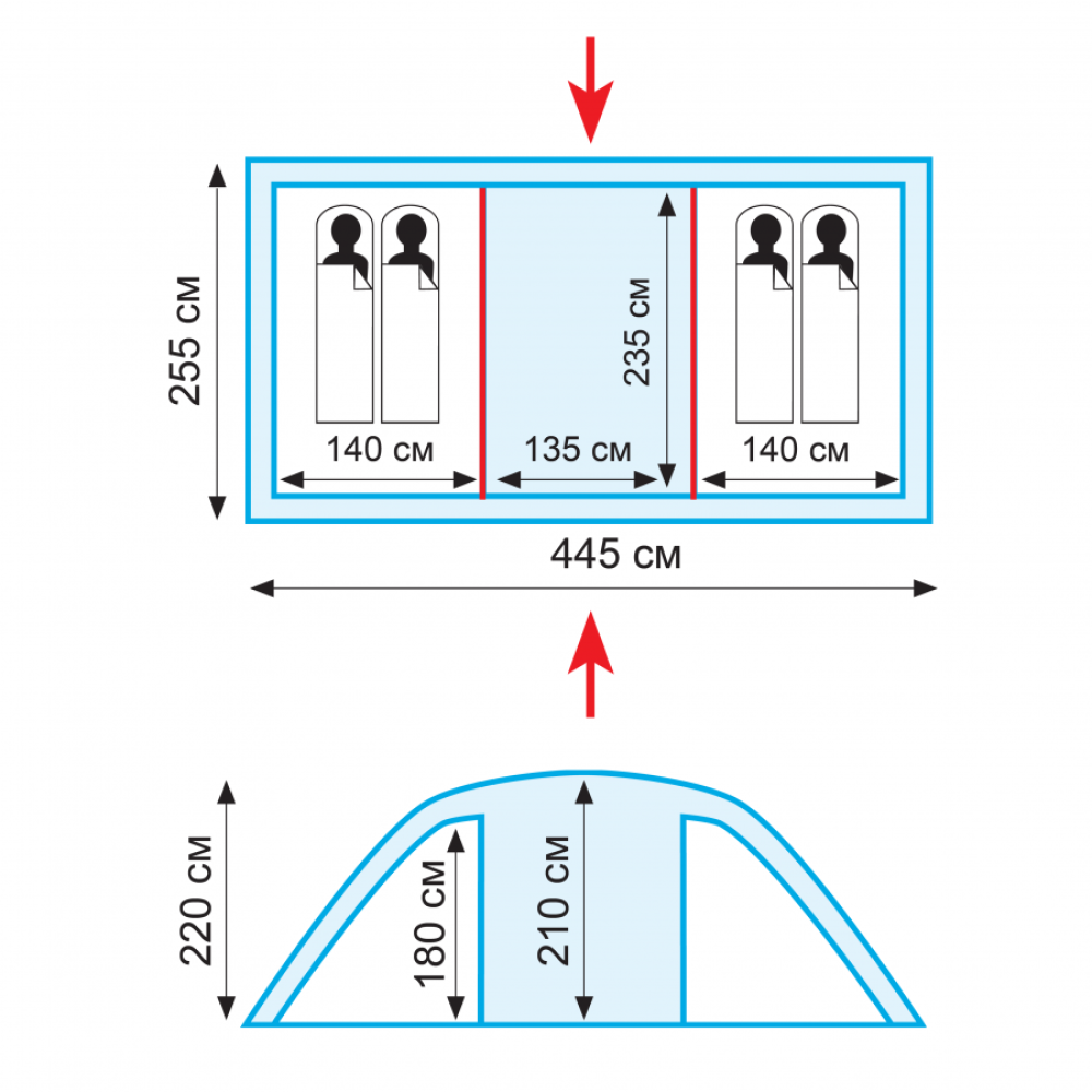 Данные палатки кемпинговые имеют 2 больших вентиляционных окна