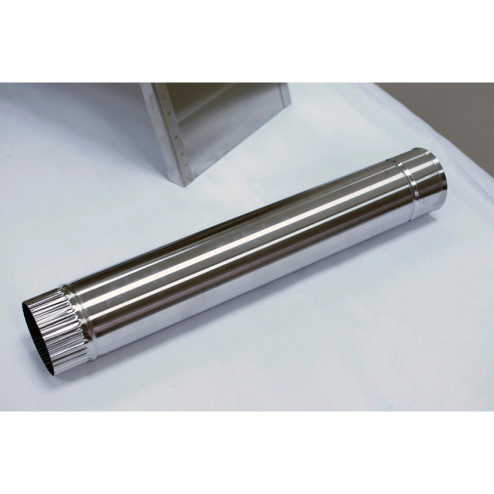 Секция трубы для печей "Берег". Изготовлены трубы из жаростойкой нержавеющей стали Aisi 430 толщиной 0,5 мм. Данная марка стали устойчива к коррозии и окислению.