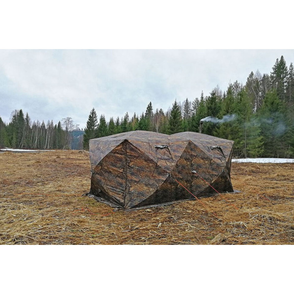 - Несколько вариантов применения. Палатка имеет универсальное применение в качестве всесезонного жилого модуля, рыболовной зимней палатки или походной бани;