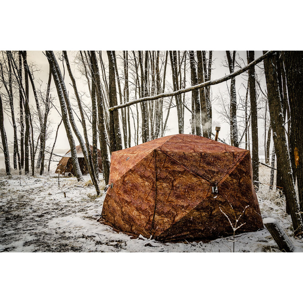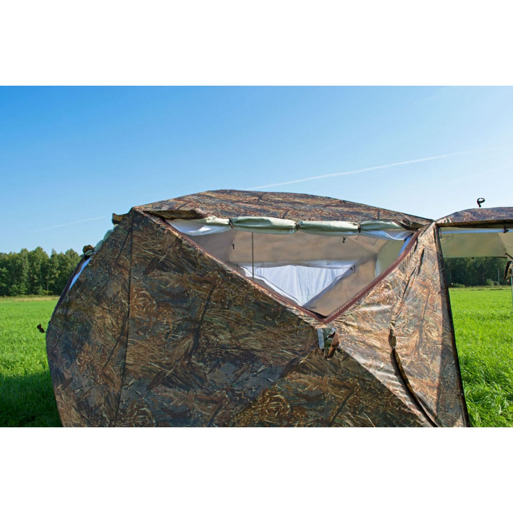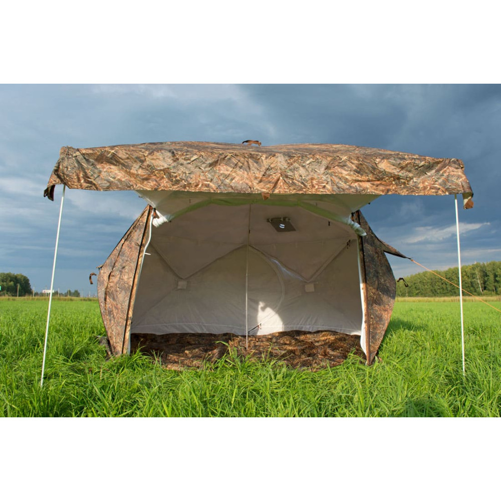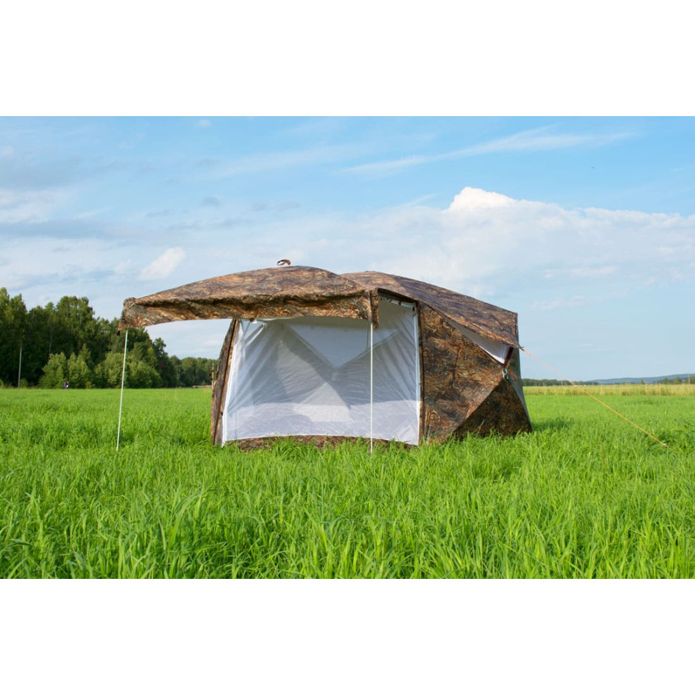 Вход в палатку продублирован 3 слоями: внешний тент, москитная сетка, внутренний тент. Благодаря этому в палатке будет комфортно как летом, так и зимой.