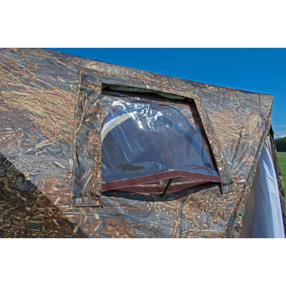 - 4 многофункциональных окна палатки расположены на боковых стенках, по два на каждой стороне. Со стороны внешнего тента окно оснащено тканевым кантом от осадков и закрывается клапаном на липе. Подпорка в нижней части окна позволяет проветривать помещения даже во время дождя. Укомплектованы москитной сеткой на молнии. В стандартной комплектации поставляются оконные заполнения на липе из прозрачной морозостойкой силиконовой пленки (гарантированная температура использования до -50);