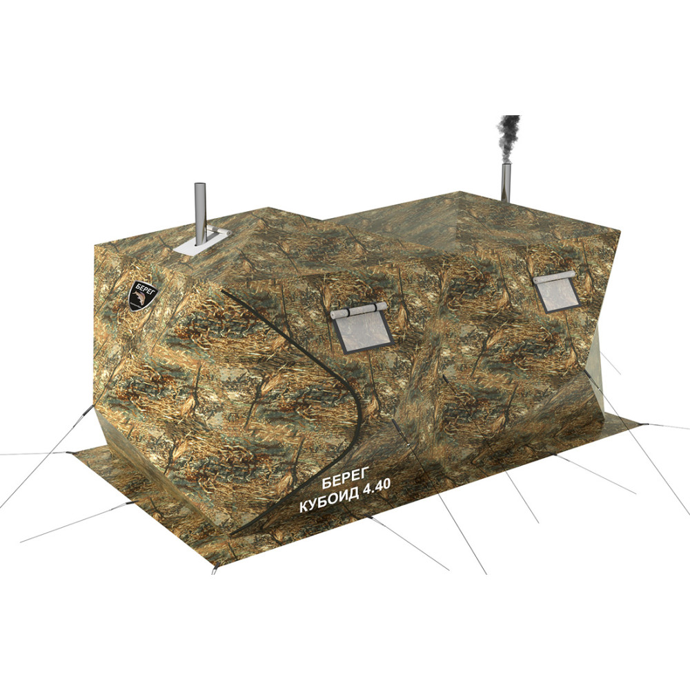 Размещение в палатке Кубоид 4.40 БерегТент палатки Кубоид 4.40 выполнен из водоупорной не продуваемой ткани Оксфорд 300 с водоотталкивающей пропиткой 4000 мм. Швы внешнего тента надежно проклеены специальной лентой, наносимой под воздействием высокой температуры.