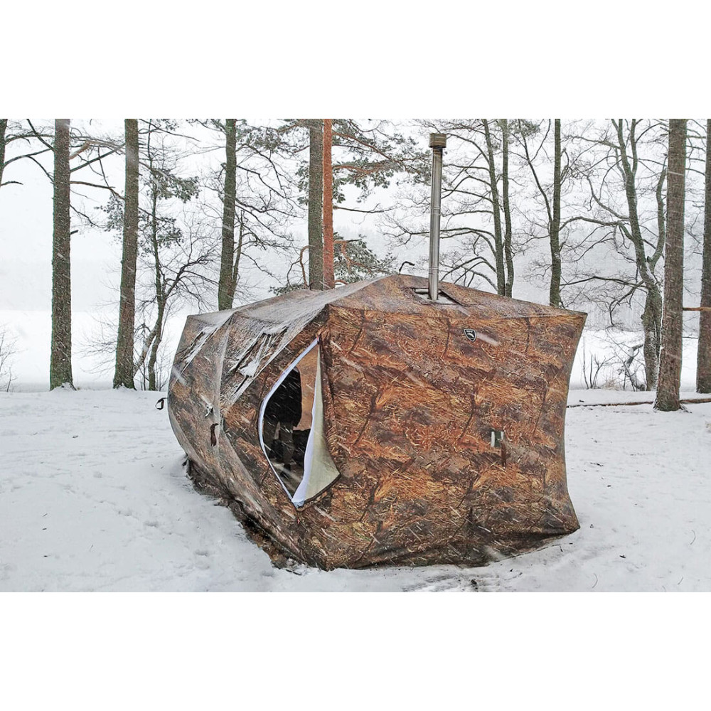 - Несколько вариантов применения. Палатка имеет универсальное применение в качестве всесезонного жилого модуля, рыболовной зимней палатки или походной бани;
