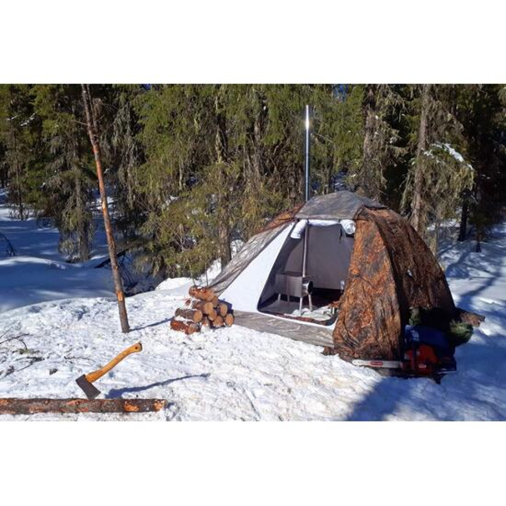 В палатке Спутник-3 полностью оборудовано место под установку дровяной печи