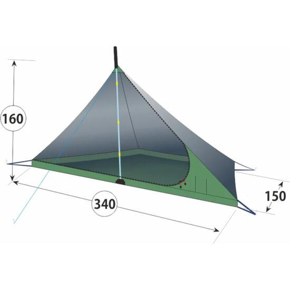 Колпак оснащен опорными стойками, обеспечивающими вентиляционный зазор между куполом палатки и тентом