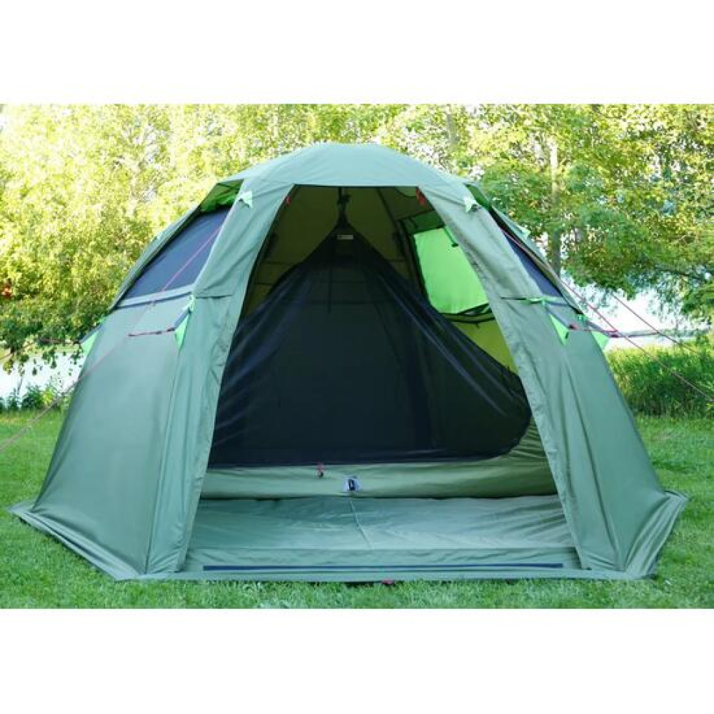 Благодаря запатентованной зонтичной конструкции каркаса «Лотос» один человек может легко раскрыть эту модель всего за 30 секунд, что является несомненным преимуществом для палатки такого огромного размера