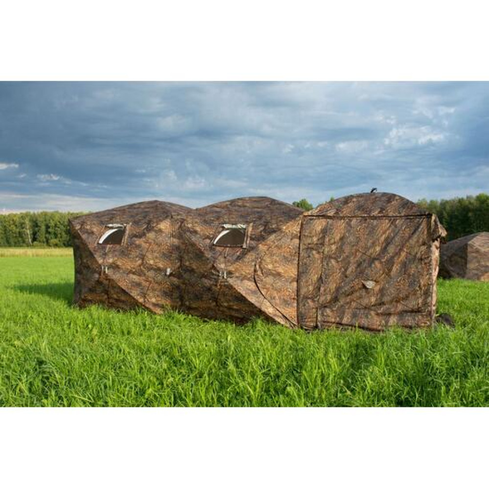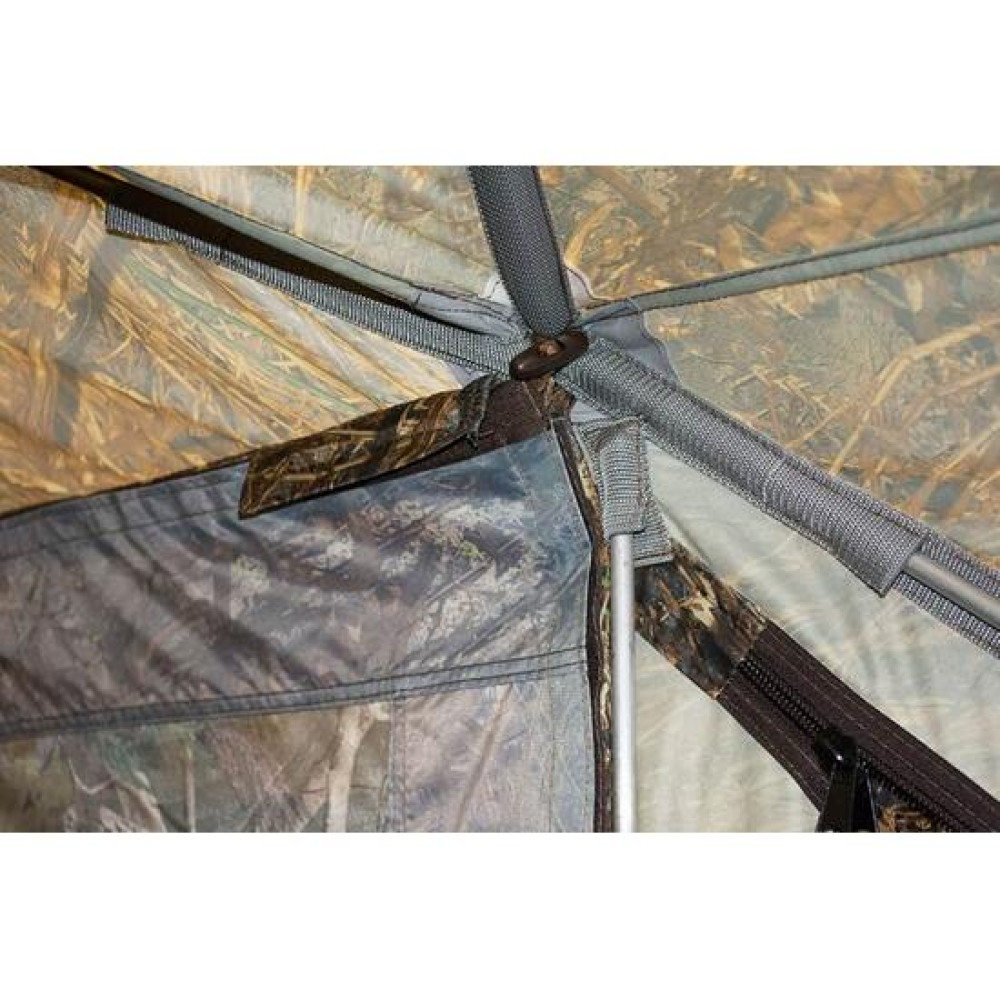 Веранда выполнена из ткани Оксфорд и москитной сетки с мелкой ячейкой, в нижней части имеется широкая юбка с оттяжными петлями для крепления
