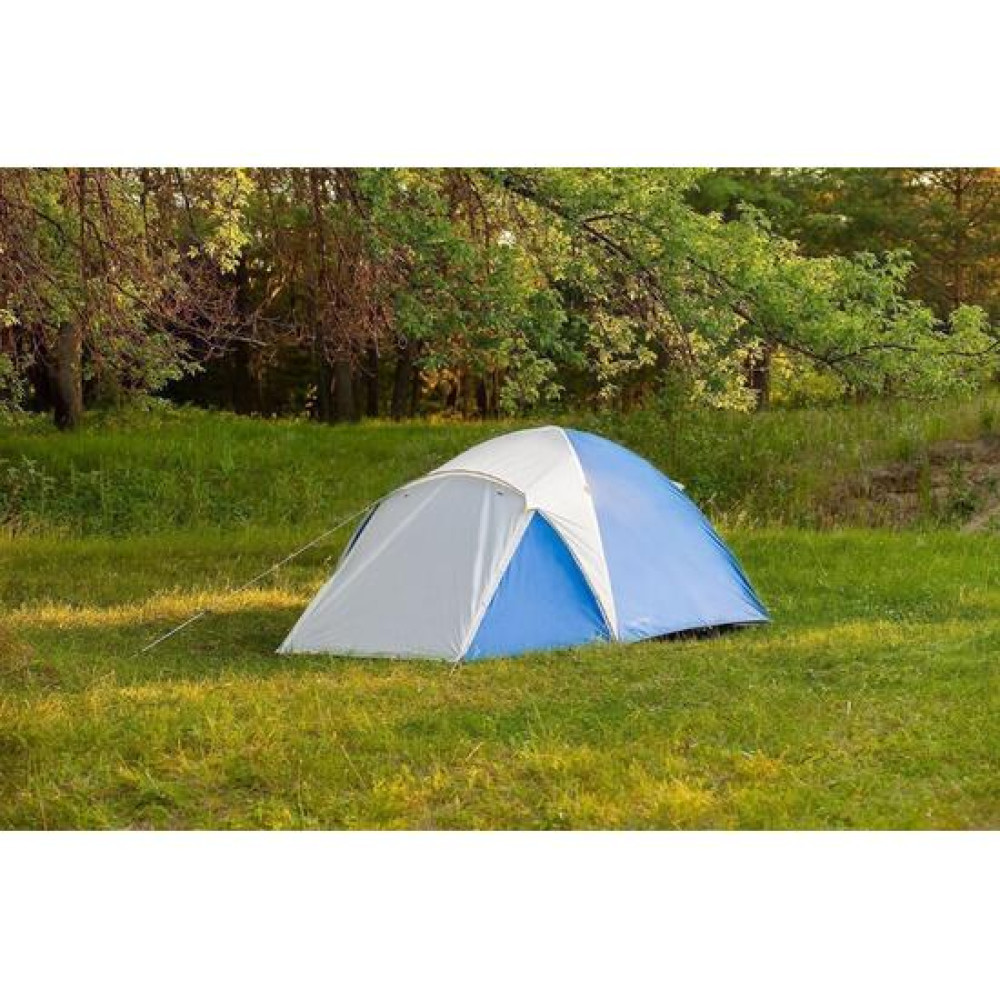 Стойкие материалы, высокая прочность и удобство в сборке и использовании - все это идеально подойдет для любого вида похода или прогулки! Вентиляция: окно с москитной сеткой, обеспечивает хороший приток воздухаДуги легкие, очень прочные изготовлены из стекловолокнаМатериал колышков: стальСтруны натяжныеВход в палатку на молнияхВход в спальню дополнительно оснащен противомоскитной сеткой, также на двойной молнииПросторная прихожая