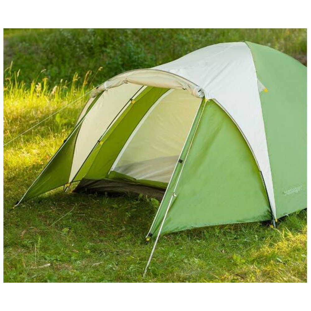 Стойкие материалы, высокая прочность и удобство в сборке и использовании - все это идеально подойдет для любого вида похода или прогулки! Вентиляция: окно с москитной сеткой, обеспечивает хороший приток воздухаМатериал дуг: стекловолокноДуги легкие, но очень прочныеМатериал колышков: стальСтруны натяжныеОчень простая и быстрая установкаВход в палатку на молнияхВход в спальню дополнительно оснащен противомоскитной сеткой, также на двойной молнииПросторная прихожая