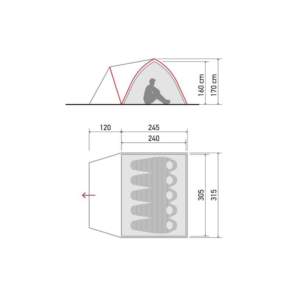 Размер наружной палатки (см): 315x(245+120)x170