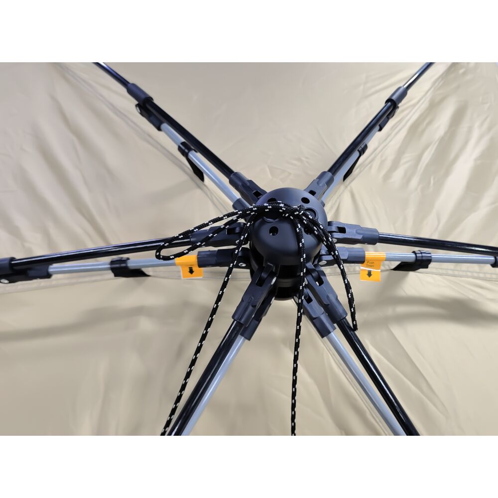 Широкие панорамные окна по периметру палатки создают условия для максимально эффективной вентиляции. Окна оборудованы шторками, что позволяет регулировать интенсивность циркуляции воздуха в палатке.
