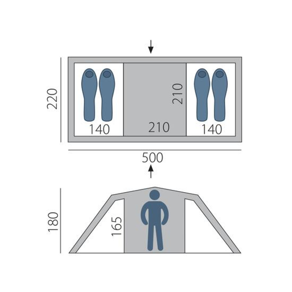 ст.):10000Материал внутренней палатки:100% полиэстер 68D/68D 190TЦвет внутренней палатки:ЖелтыйВес (г):8700Количество слоев:2Количество мест:4Количество входов:2Высота (см):180Наружний габарит (см):500*220Тамбур (см):210Упаковка:Тканевый мешок