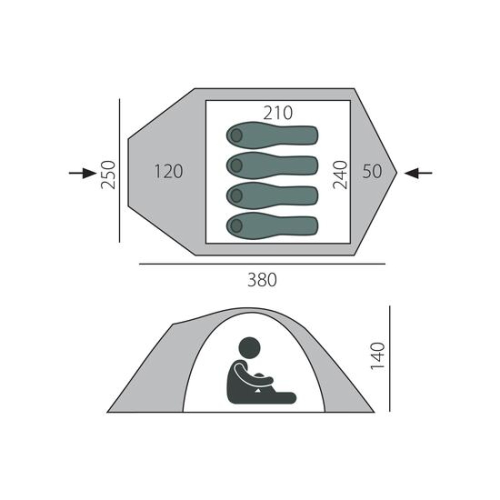 ст.):8000Материал внутренней палатки:100% полиэстерЦвет внутренней палатки:ЖелтыйВес (г):5250Количество слоев:2Устойчивость к ультрафиолетовому излучению:ДаКоличество мест:4Количество входов:2Комплектация:Колышки, оттяжки, инструкцияРазмер в упаковке (см):57х19,5х17,5Высота (см):140Наружний габарит (см):380*250Тамбур (см):1х120, 1х50Упаковка:Тканевая сумка