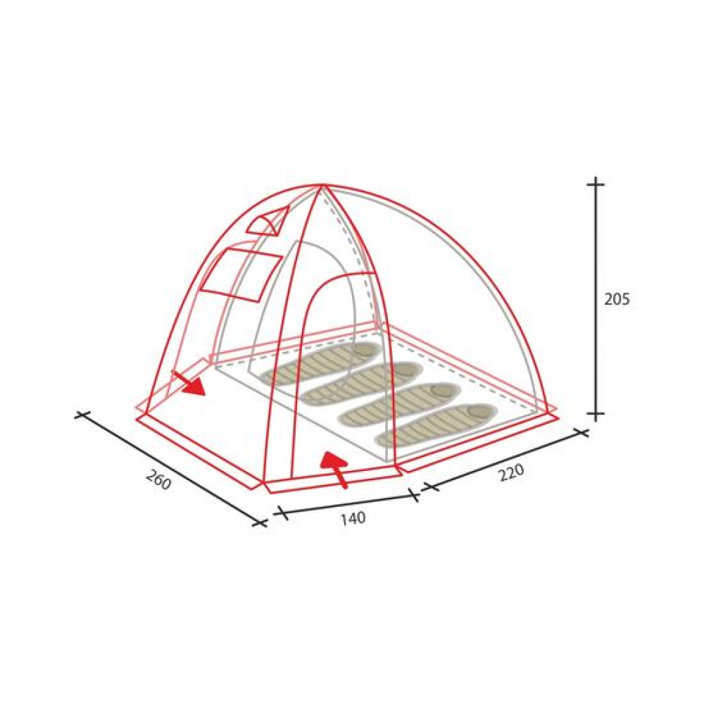 В данной модели можно убрать спальное место и превратить палатку в шатер или кухню.Дополнительно можно приобрести пол для тамбура ALBERTA 4 Характеристики: Тип палатки КемпинговаяСезон весна, лето, осеньВместительность 4-местнаяТент двухслойныйМатериал тента Полиэстер 210T РипСтопМатериал внутренней палатки полиэстерМатериал дна терпаулингМатериал дуг каркаса Сталь, СтеклопластикДиаметр дуг каркаса, мм 11Водостойкость тента, мм 6000Водостойкость дна, мм 11000Герметизация швов проклееныКоличество комнат 1Количество входов 2Наличие тамбура естьНаличие окон естьПротивомоскитная сетка естьНаличие юбки естьШтормовые оттяжки естьЦвет синийДлина, см 360Ширина, см 260Высота, см 205Вес, кг 8,7Размер спального места, Д*Ш, см 210*250Размер в сложенном виде, Д*Ш*В, см 57*22*22Гарантия, мес