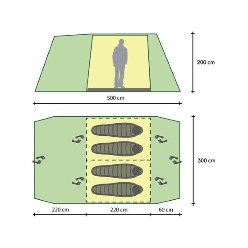 | Габариты установленной палатки(Длина, ширина, высота) | 500х300х200 см |