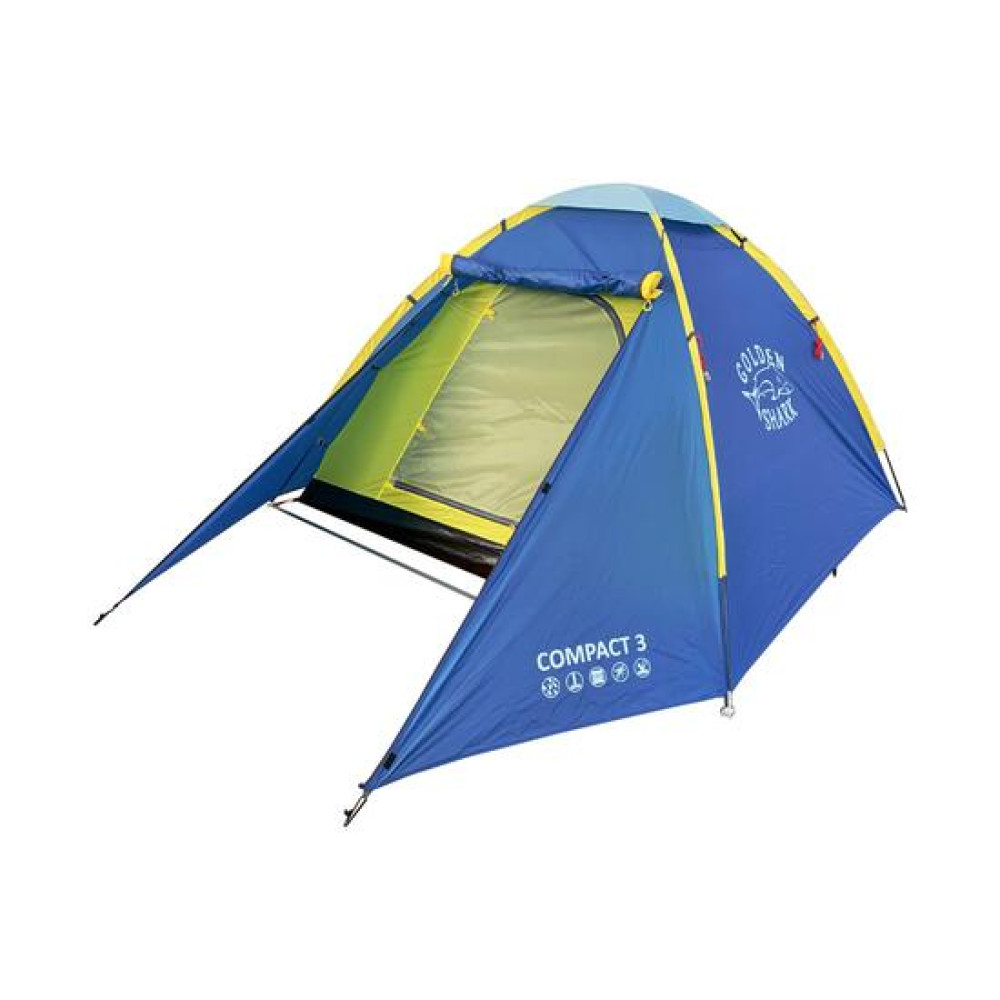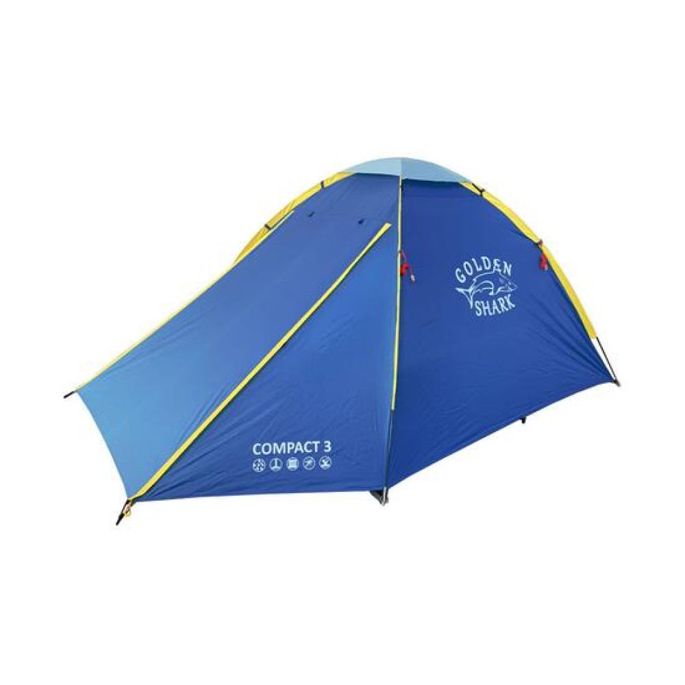| Габариты установленной палатки(Длина, ширина, высота)305x210x125 см. | Габариты установленной палатки(Длина, ширина, высота)305x210x125 см. ОписаниеХарактеристикиОтзывыТеги Трехместная палатка GOLDEN SHARK Compact 3 - обновленная в 2021 году, одна из самых популярных палаток в модельном ряду GOLDEN SHARK. К важным изменениям,Golden shark | Герметезация швовпроклеены |