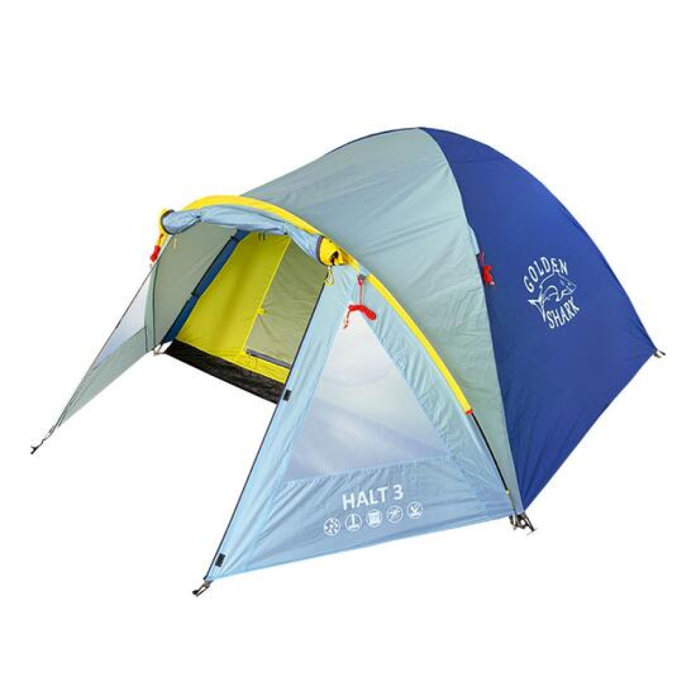 | Габариты установленной палатки(Длина, ширина, высота)300х240х130 см ОписаниеХарактеристикиОтзывыТеги Популярная палатка Golden Shark Halt 3 с тамбуром. Модельный ряд Halt- гармония цены и качества. ✅Изготавливается из прочной на разрыв, усиленной ткани 210 | Golden shark |